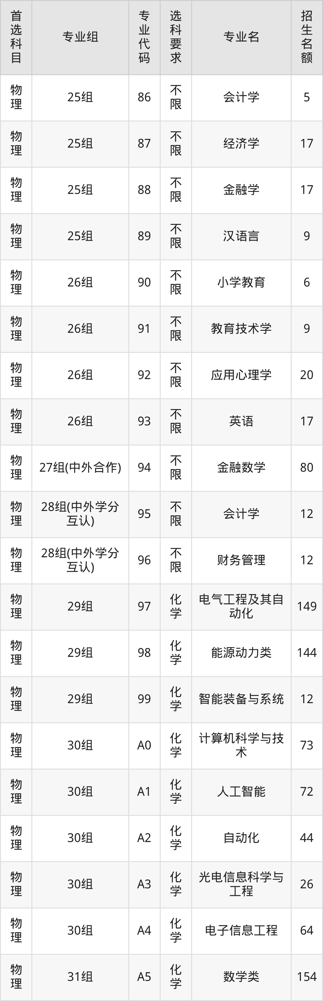 | 物理 | 35组(中外学分互认) | 565 | 73284 |