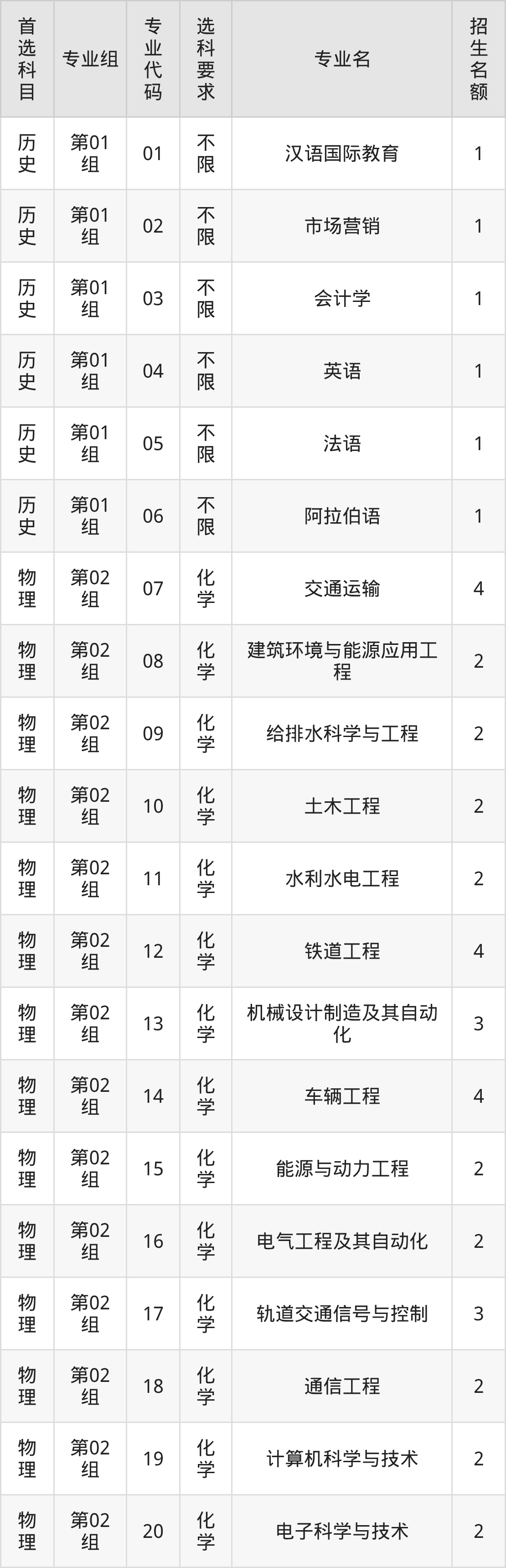 二、兰州交通大学在湖北招生计划及专业