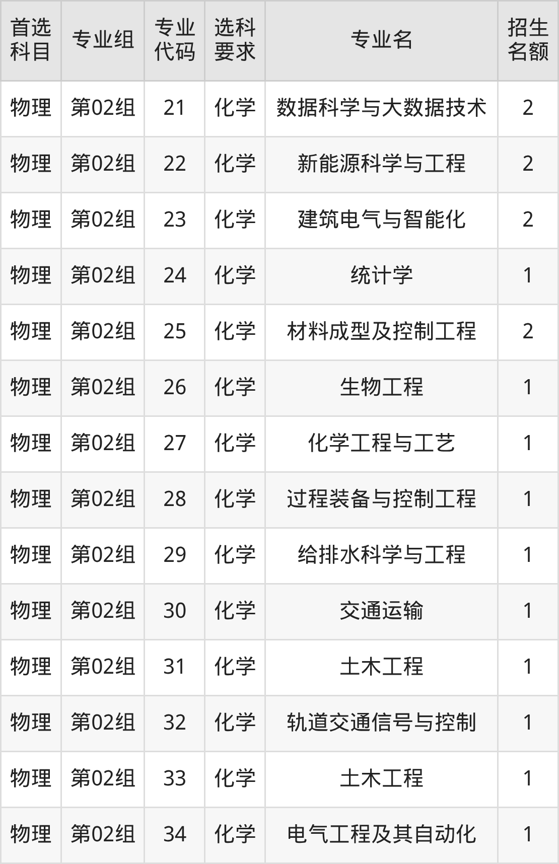 各专业选科要求、招生名额汇总如下: