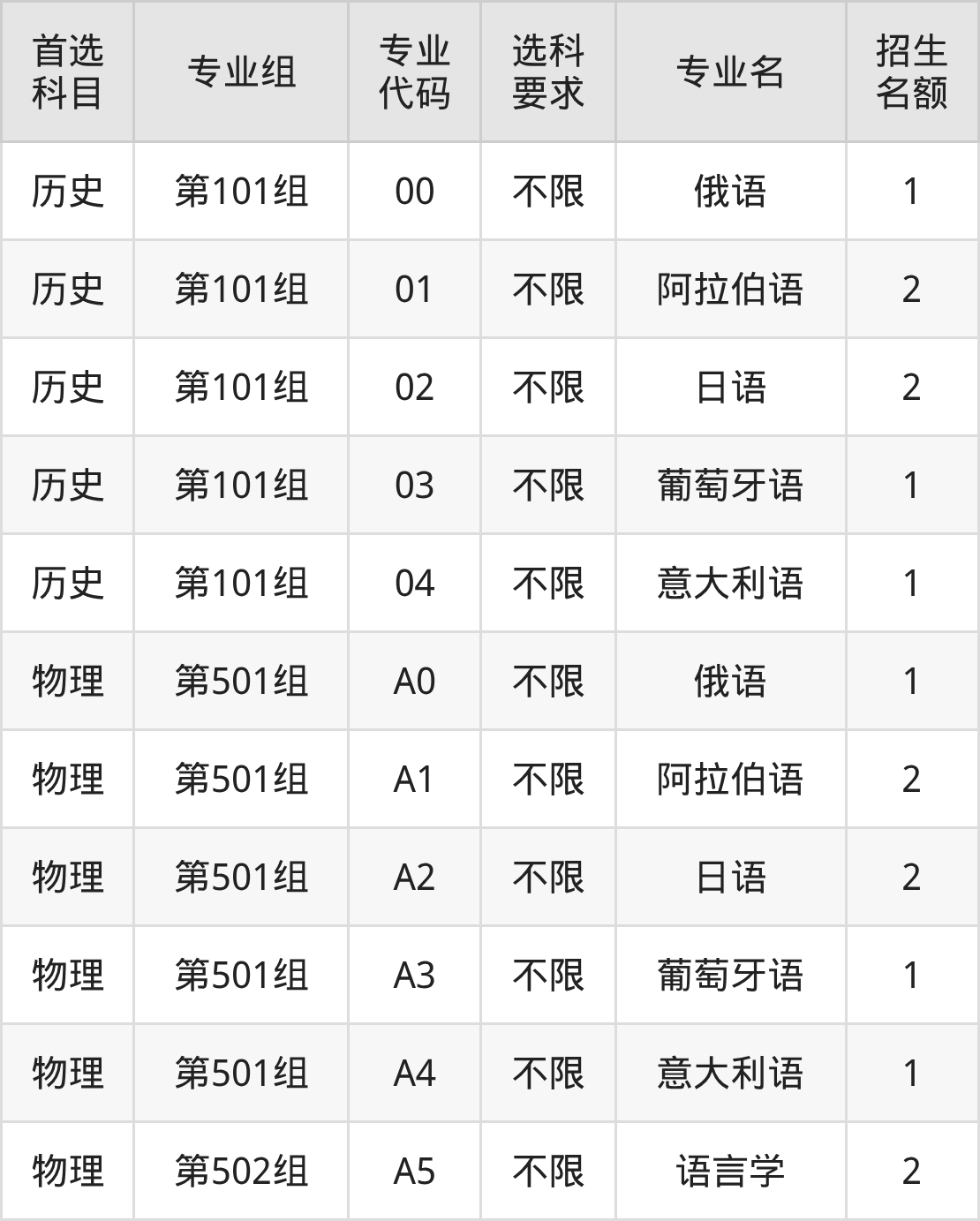 2025年上海外国语大学在江西省本科提前批招生中,总计划人数为16人,招生专业有6个,包括俄语(2人)、阿拉伯语(4人)、日语(4人)、葡萄牙语(2人)等。