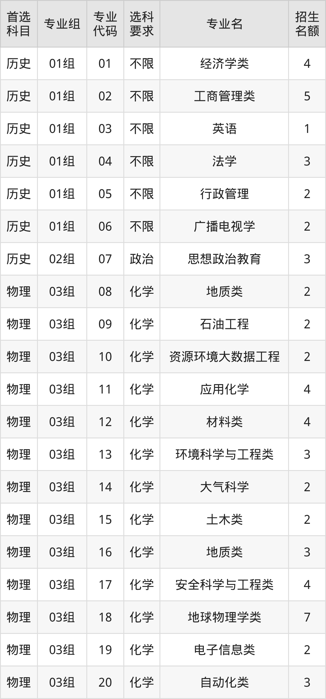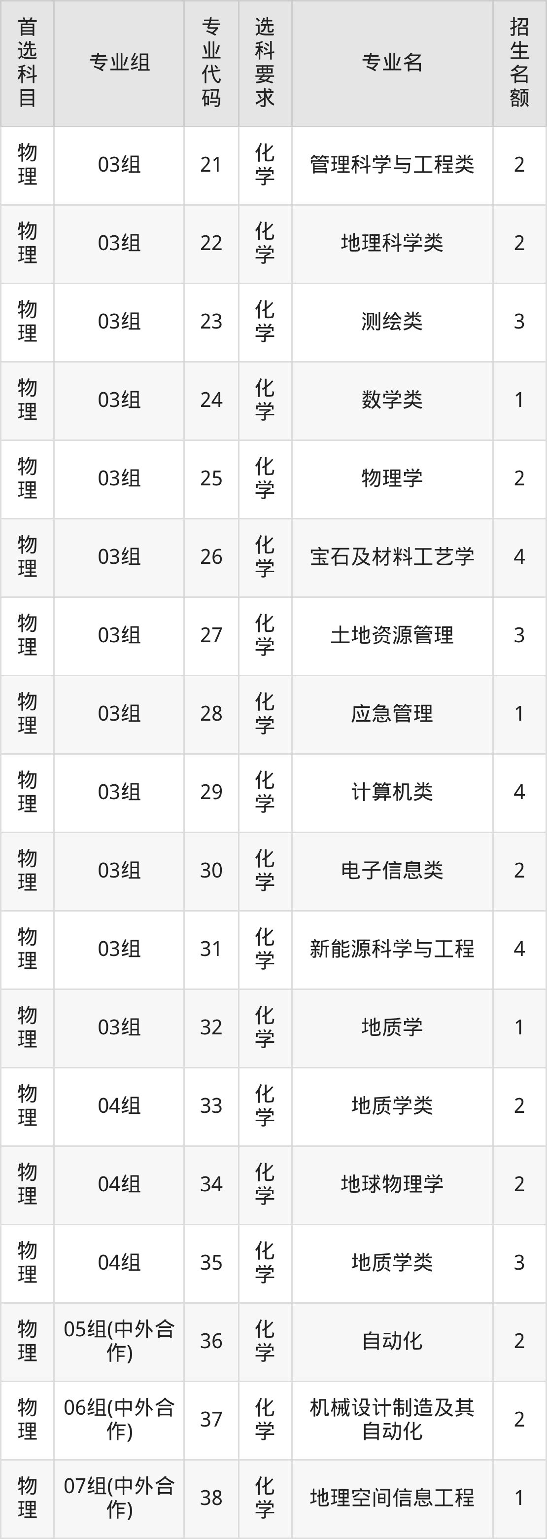 二、中国地质大学(武汉)在江苏招生计划及专业