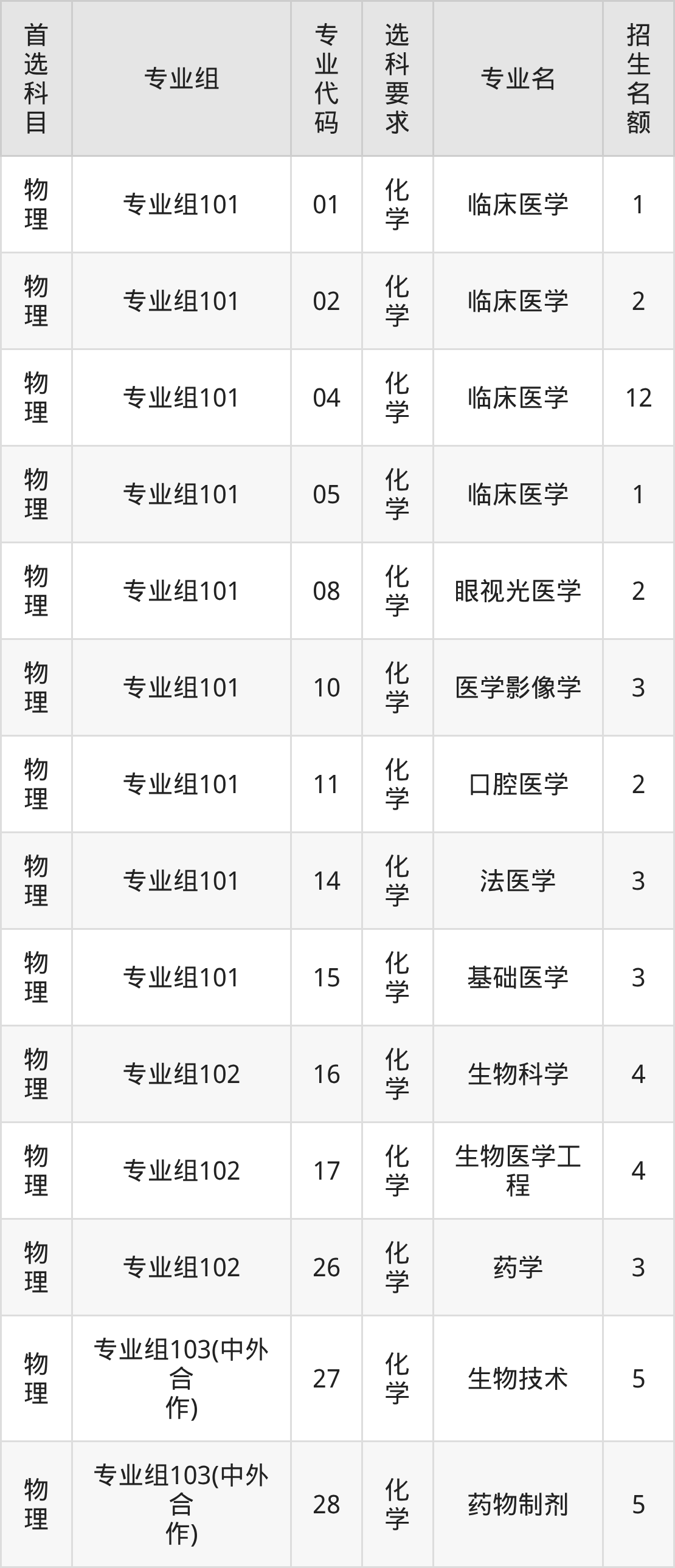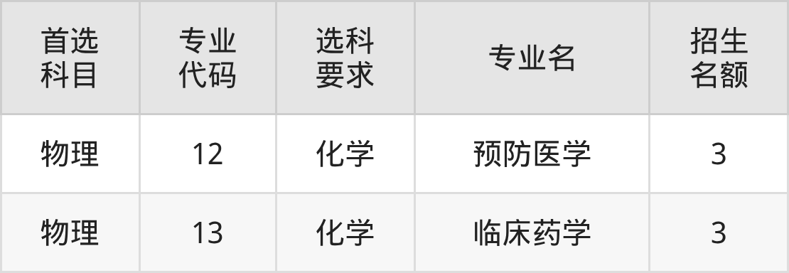 各专业选科要求、招生名额汇总如下: