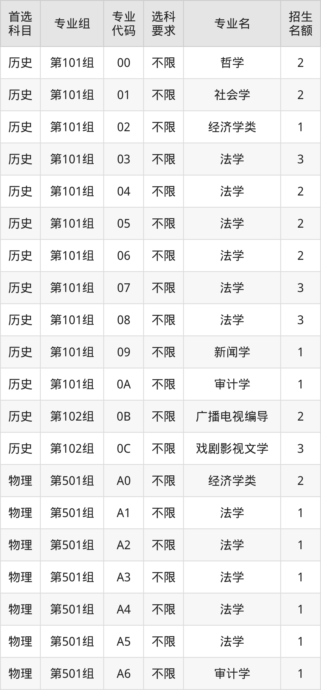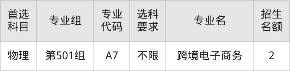 各专业选科要求、招生名额汇总如下: