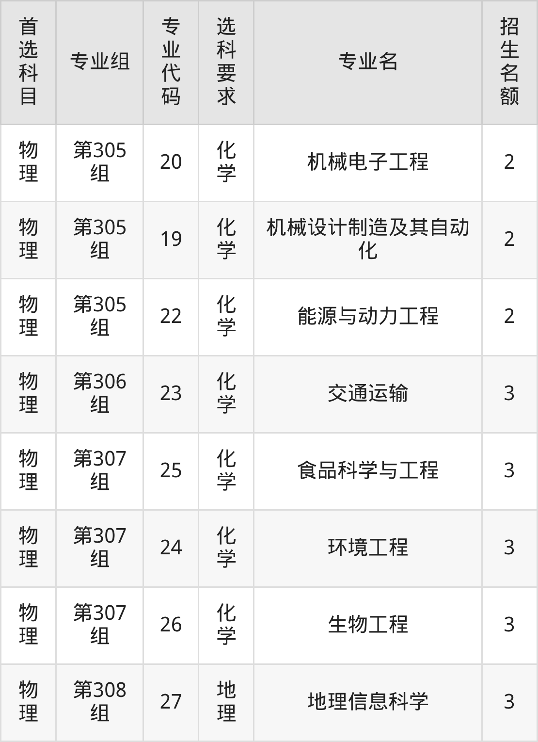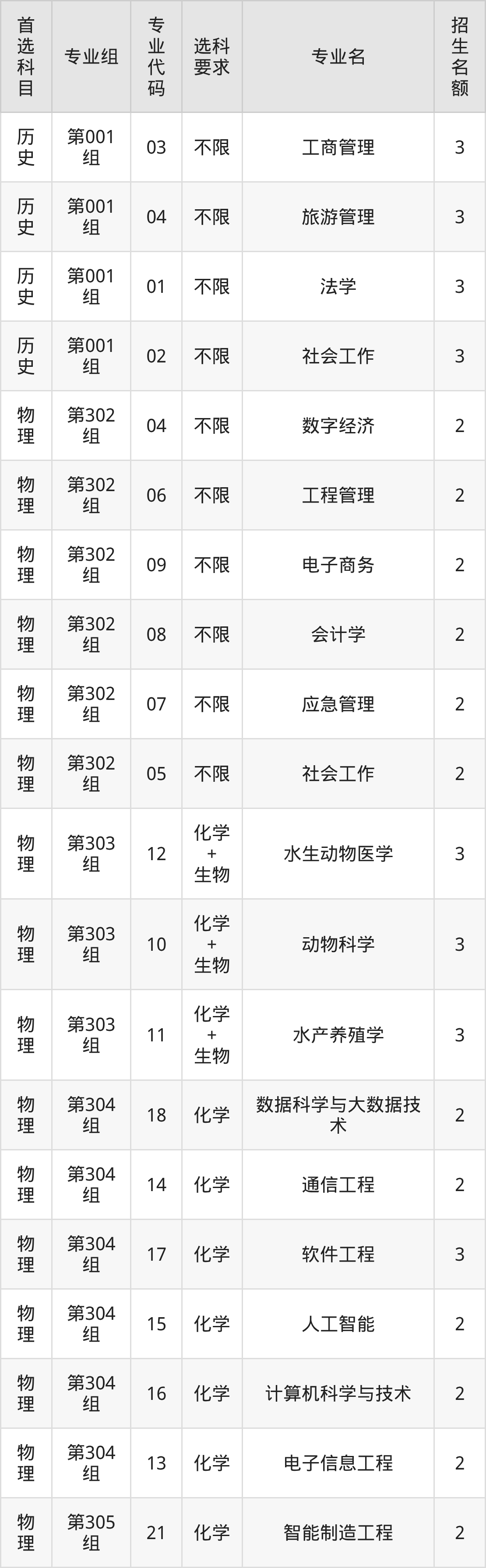 各专业选科要求、招生名额汇总如下: