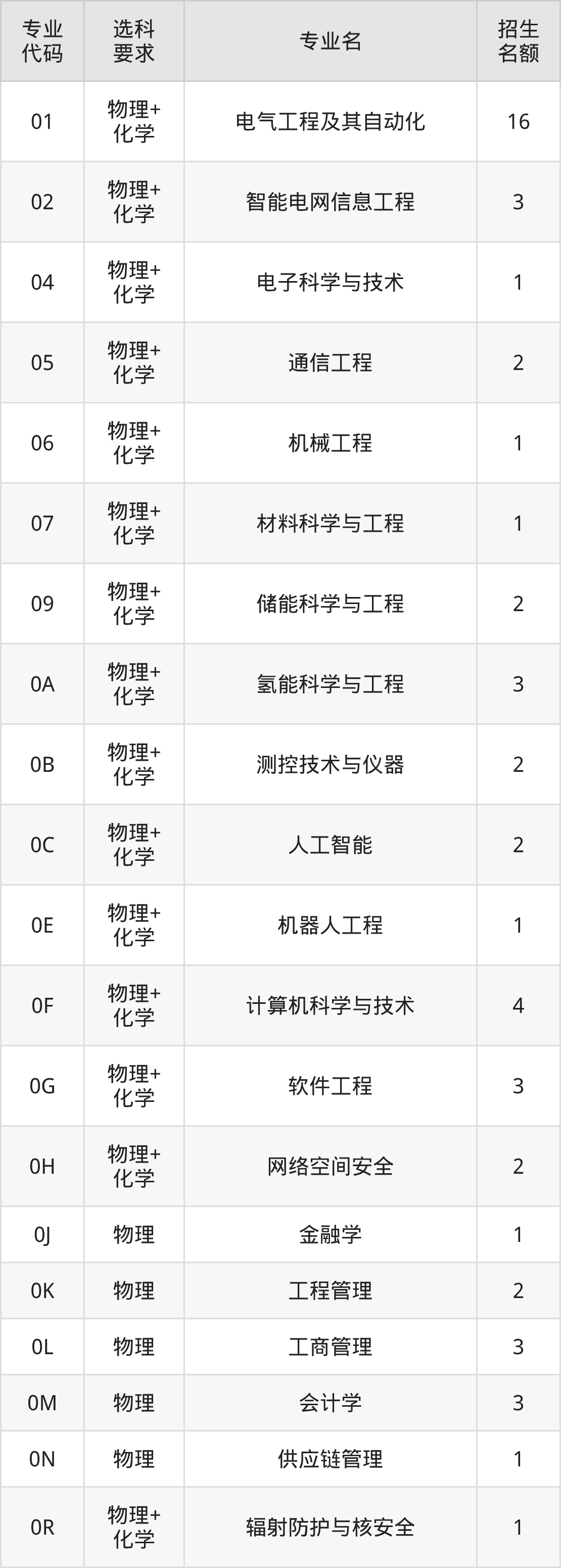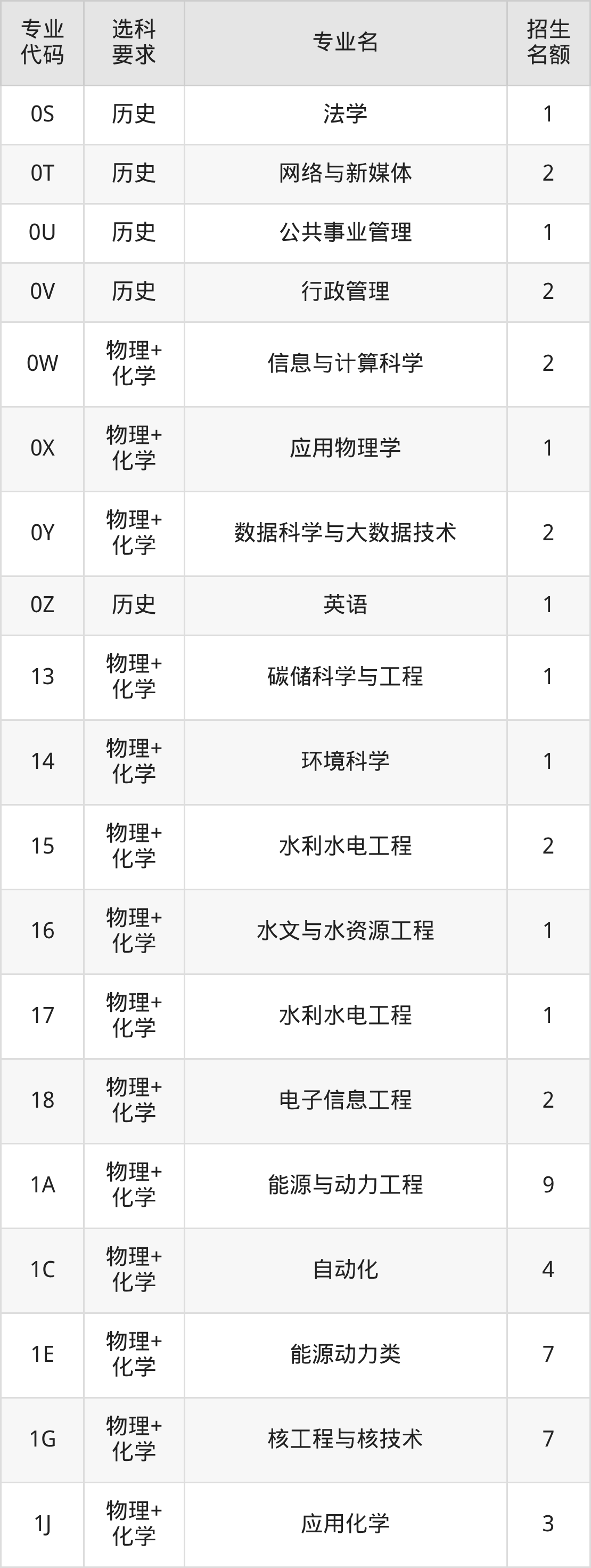 各专业选科要求、招生名额汇总如下:
