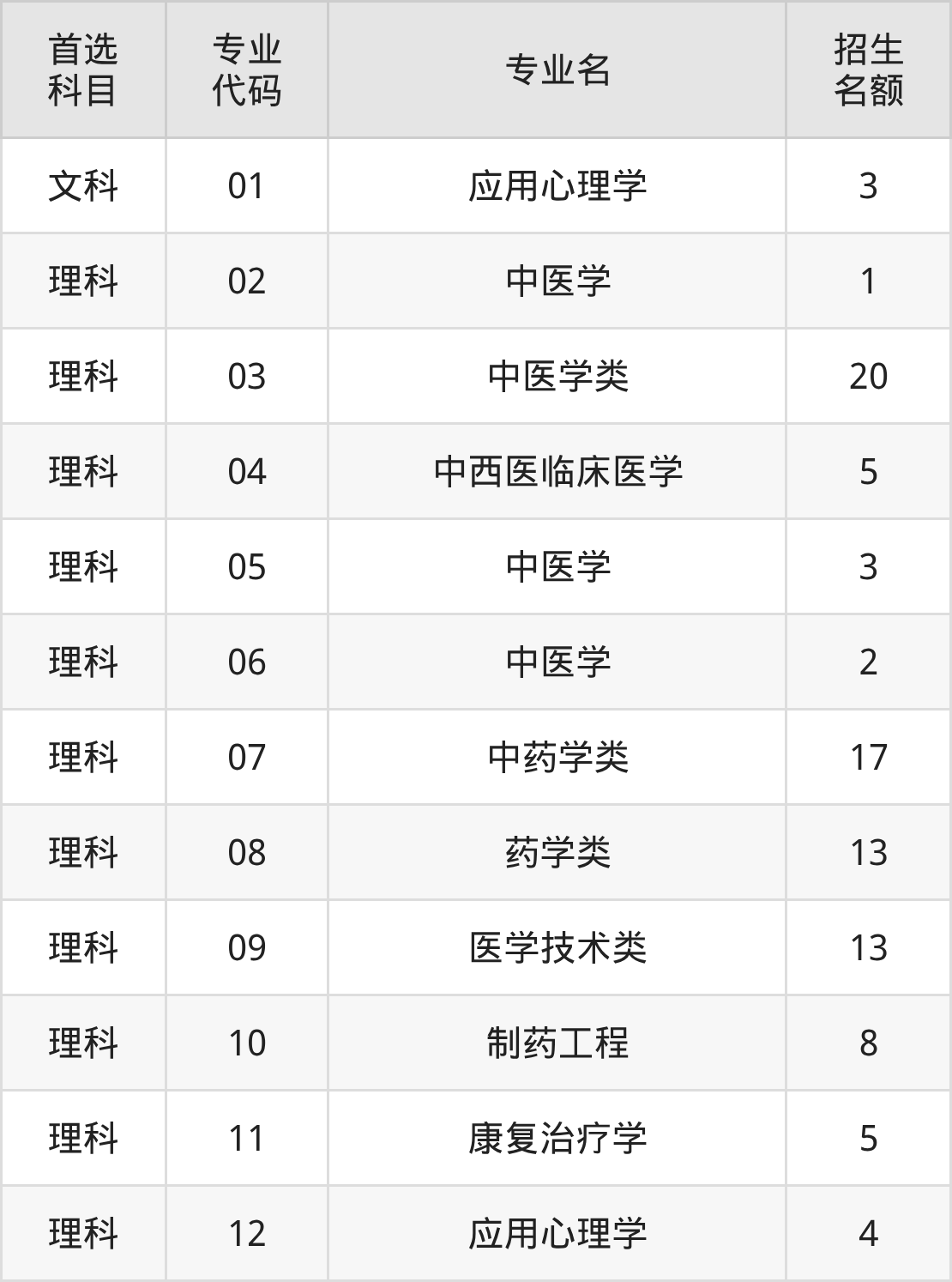 二、天津中医药大学在新疆招生计划及专业