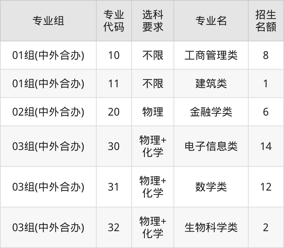 2025年西交利物浦大学在北京市本科批招生中,总计划人数为43人,招生专业有6个,包括工商管理类(8人)、建筑类(1人)、金融学类(6人)、电子信息类(14人)等。其中工商管理类、建筑类、金融学类为中外合作办学,学费均是93000元/年。