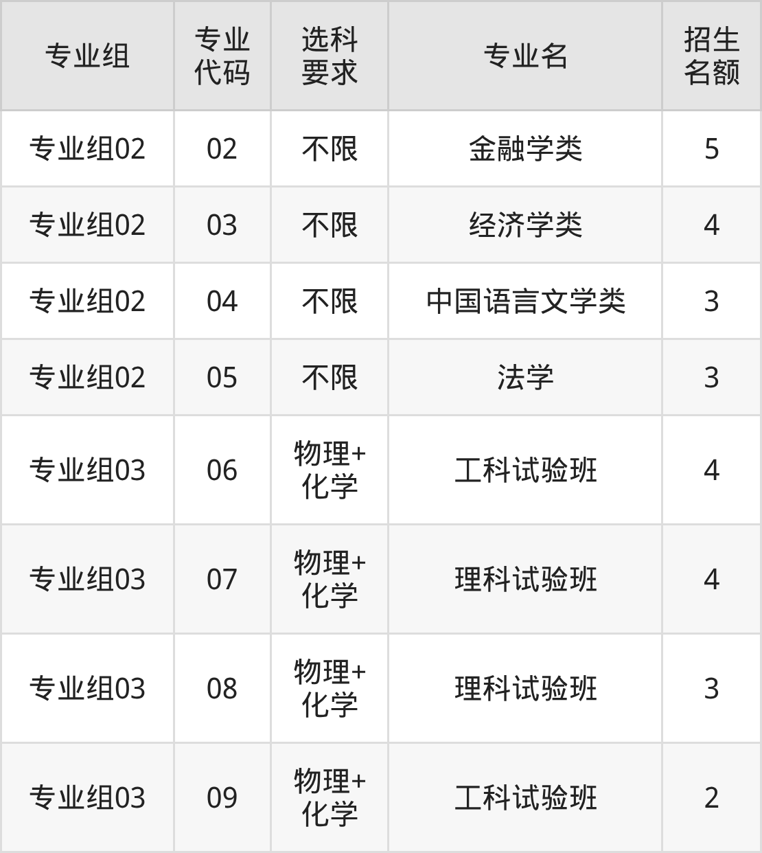 各专业选科要求、招生名额汇总如下: