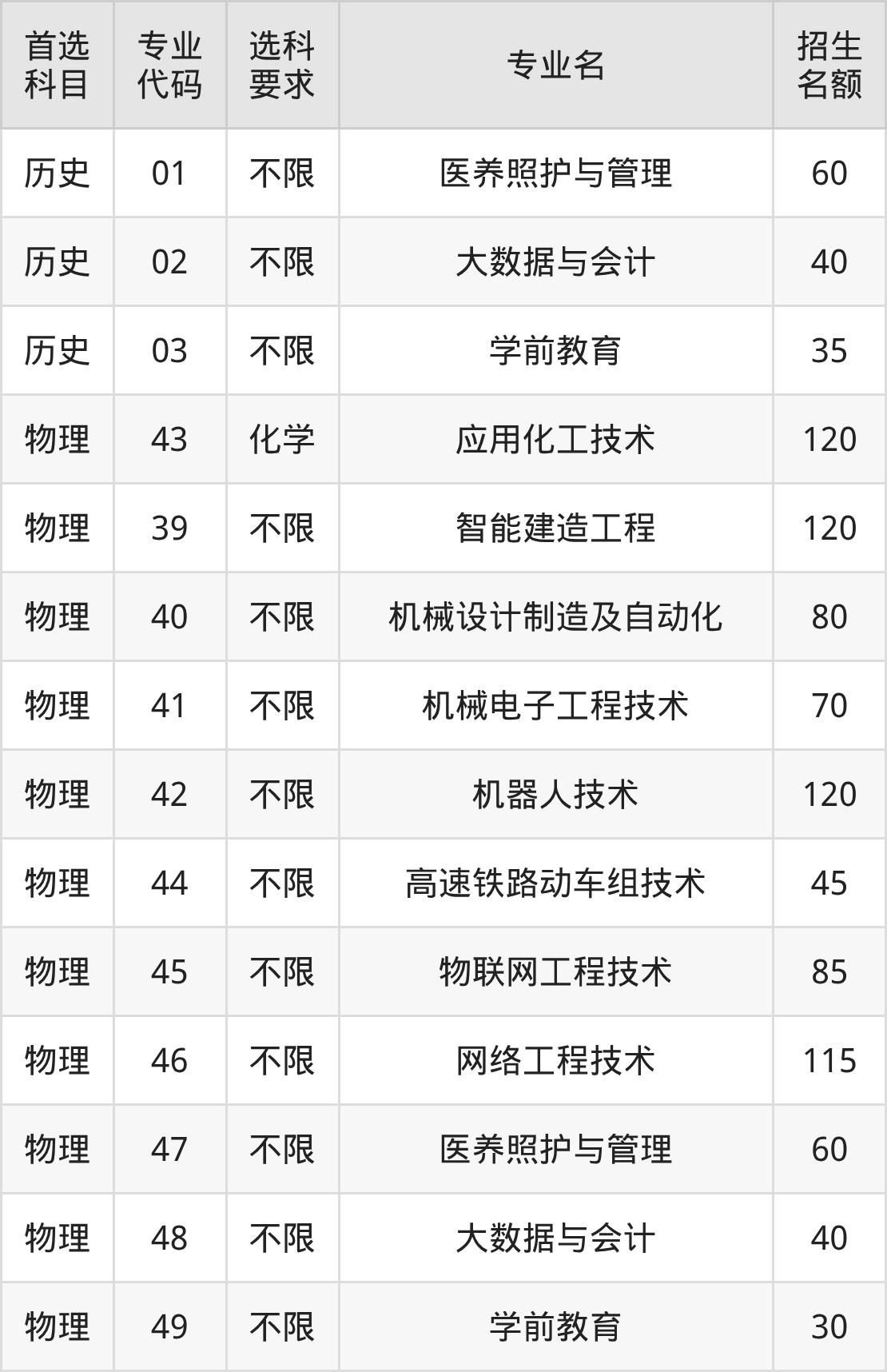 2025年唐山工业职业技术大学在河北省本科批招生中,总计划人数为1020人,招生专业有11个,包括医养照护与管理(120人)、大数据与会计(80人)、学前教育(65人)、应用化工技术(120人)等。