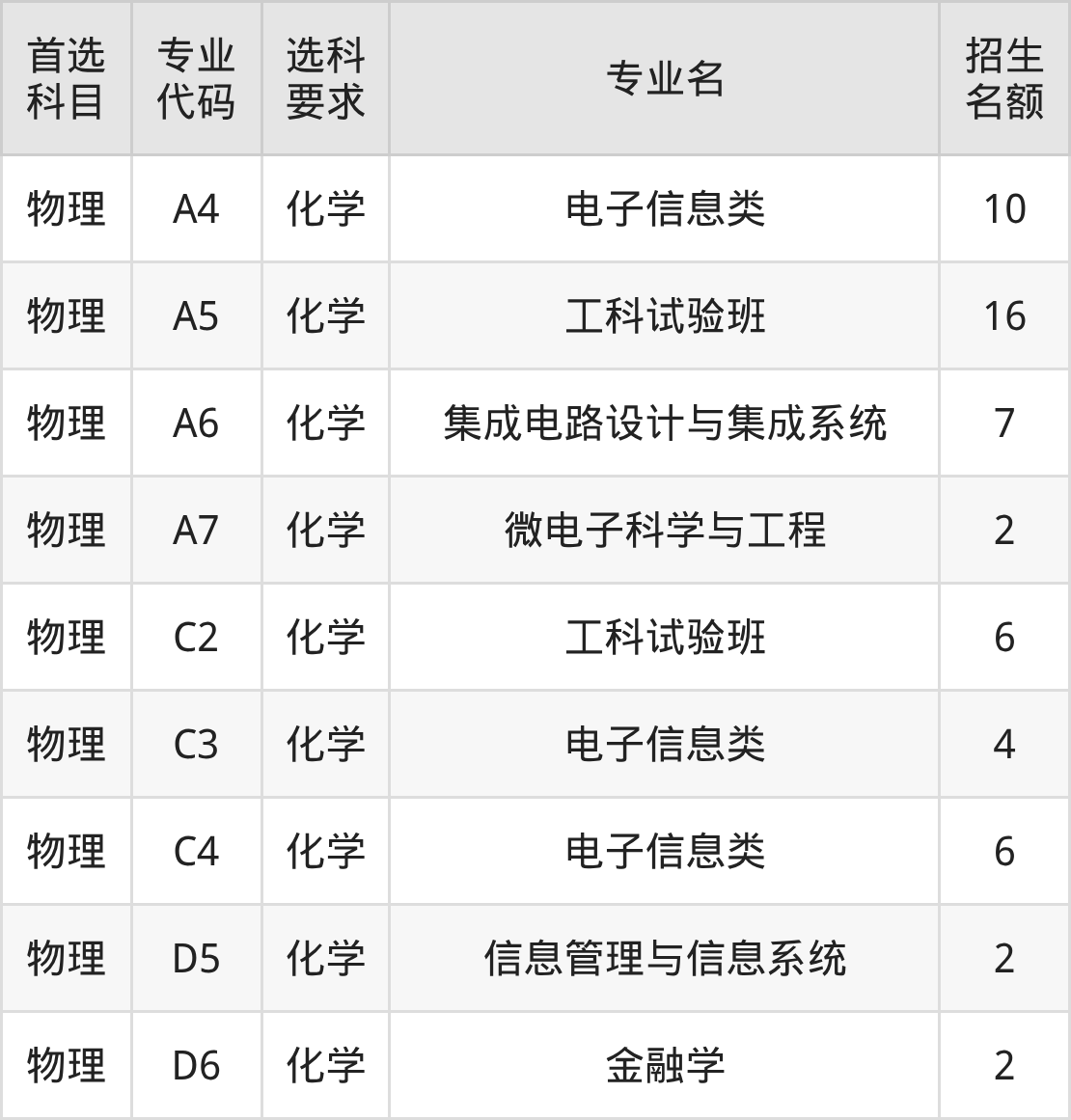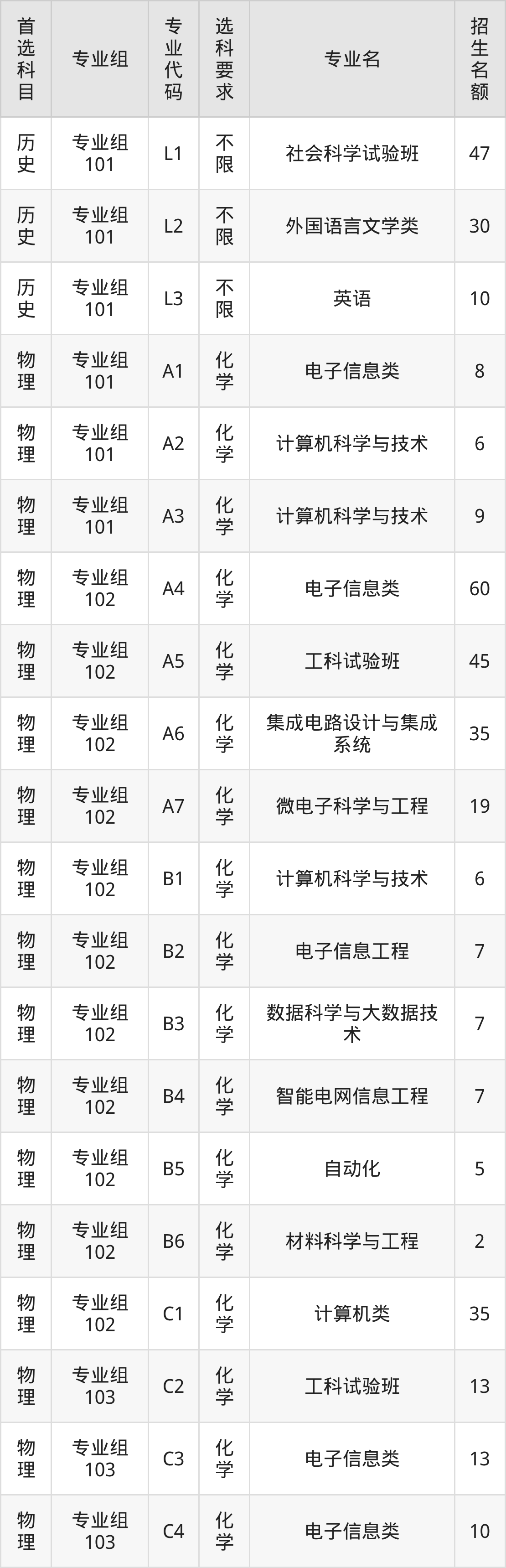 各专业选科要求、招生名额汇总如下: