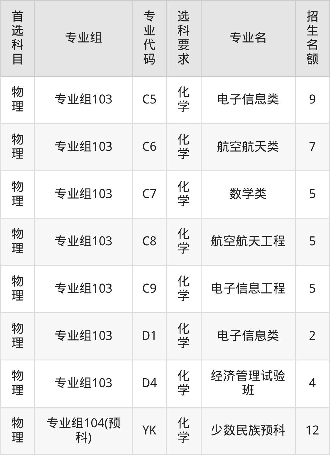 | 物理 | 专业组103 | 653 | 2851 |