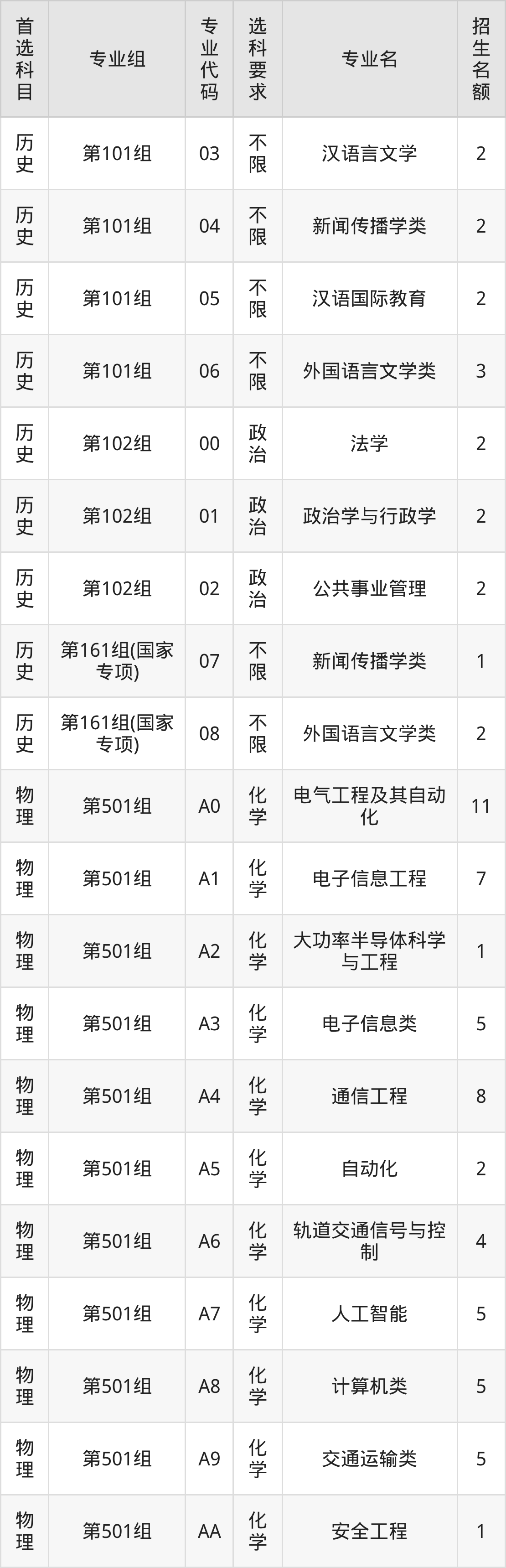 2025年西南交通大学在江西省本科批招生中,总计划人数为228人,招生专业有55个,包括汉语言文学(2人)、新闻传播学类(3人)、汉语国际教育(2人)、外国语言文学类(5人)等。