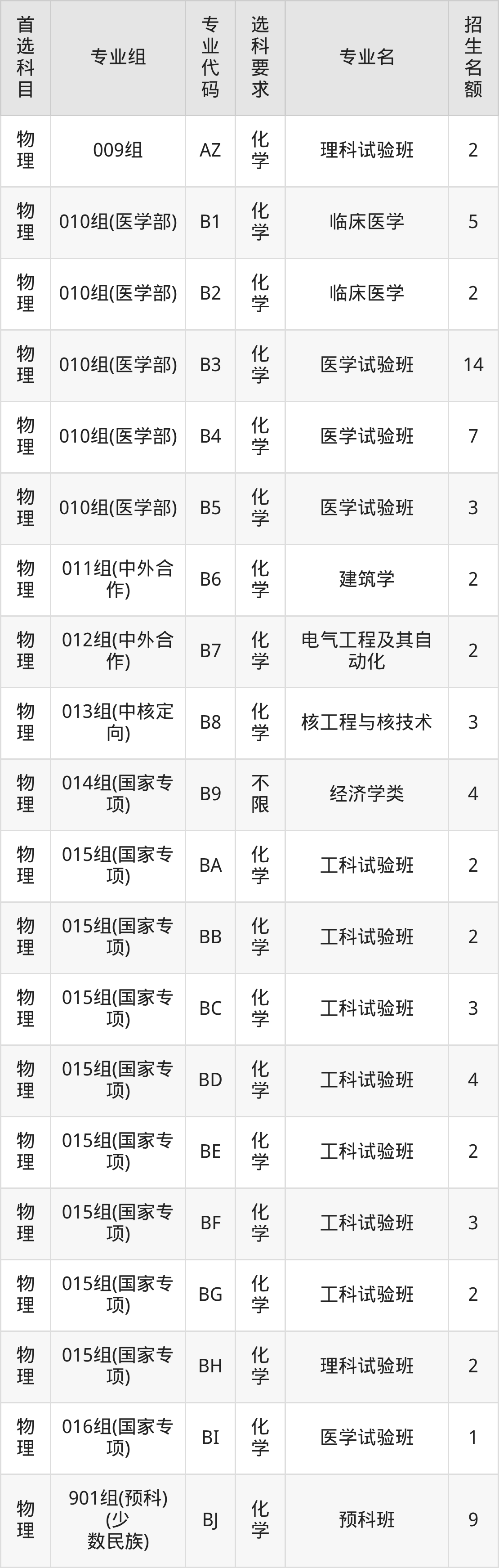 | 物理 | 010组(医学部) | 608 | 2554 |