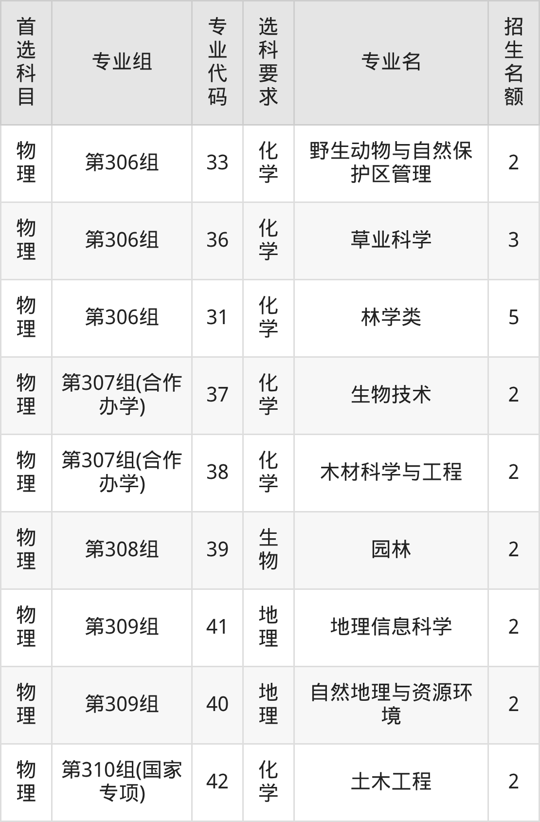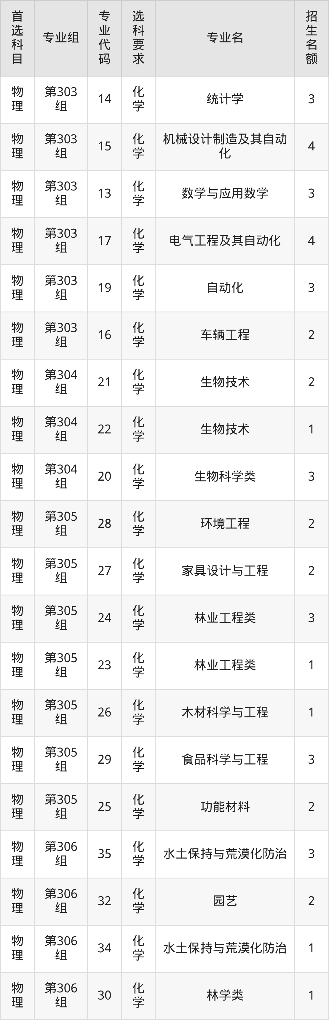 二、北京林业大学在山西招生计划及专业
