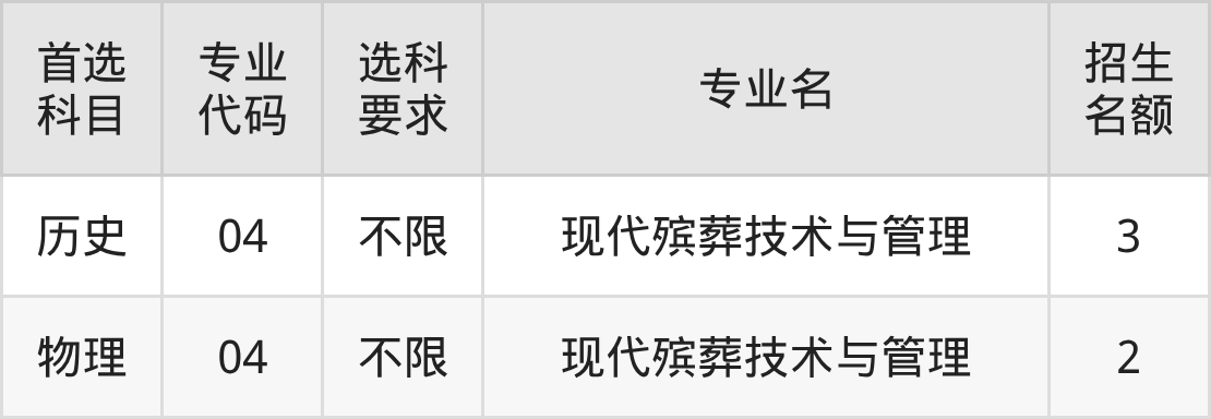 各专业选科要求、招生名额汇总如下: