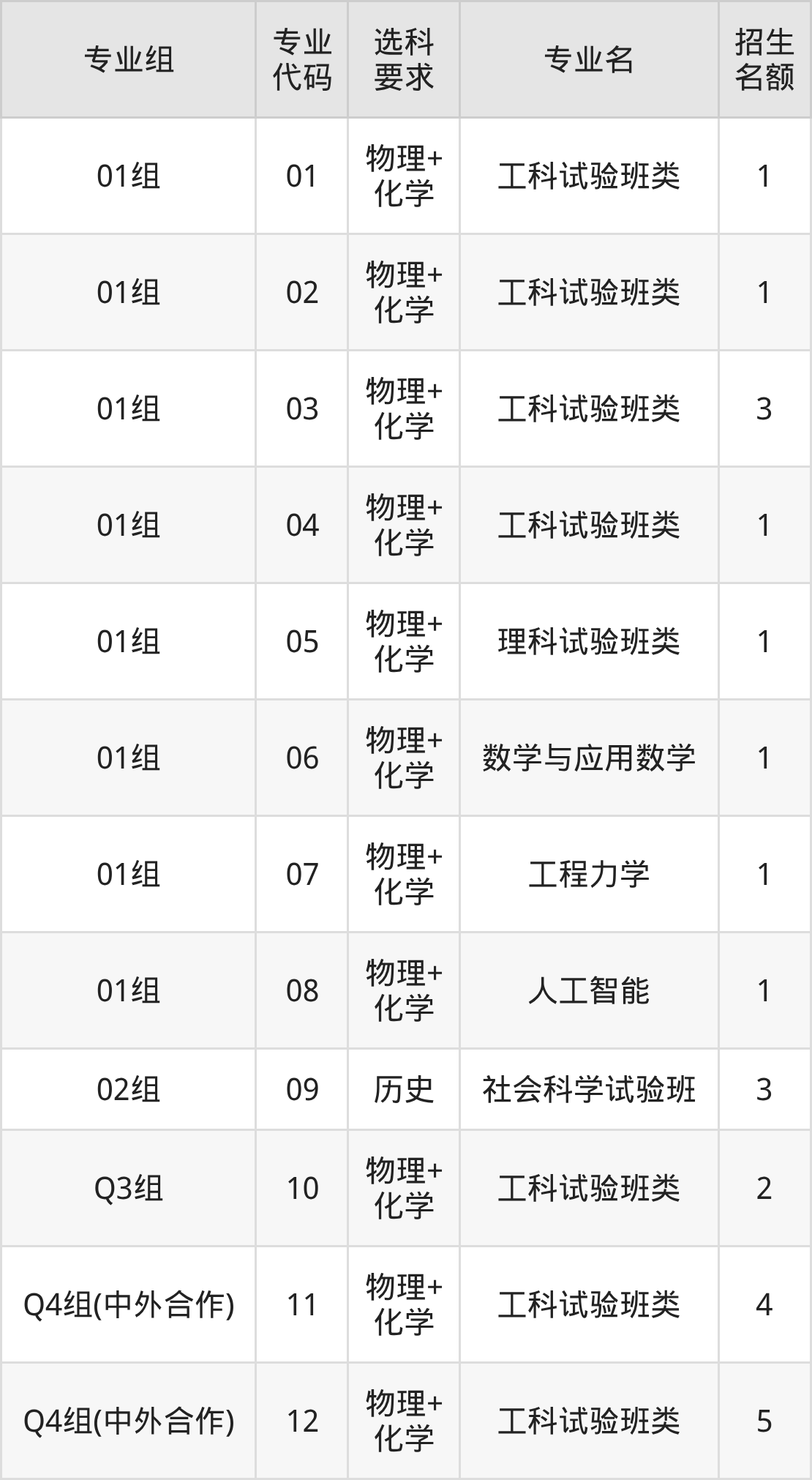 各专业选科要求、招生名额汇总如下: