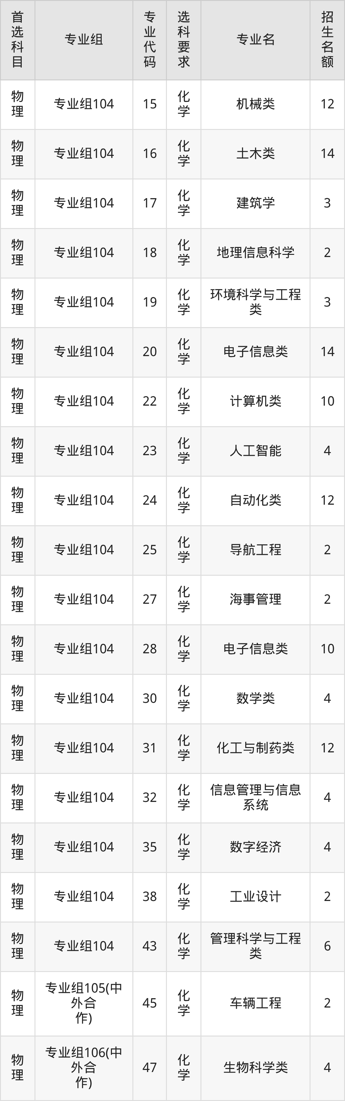 | 物理 | 专业组101(中外合 作) | 600 | 23461 |