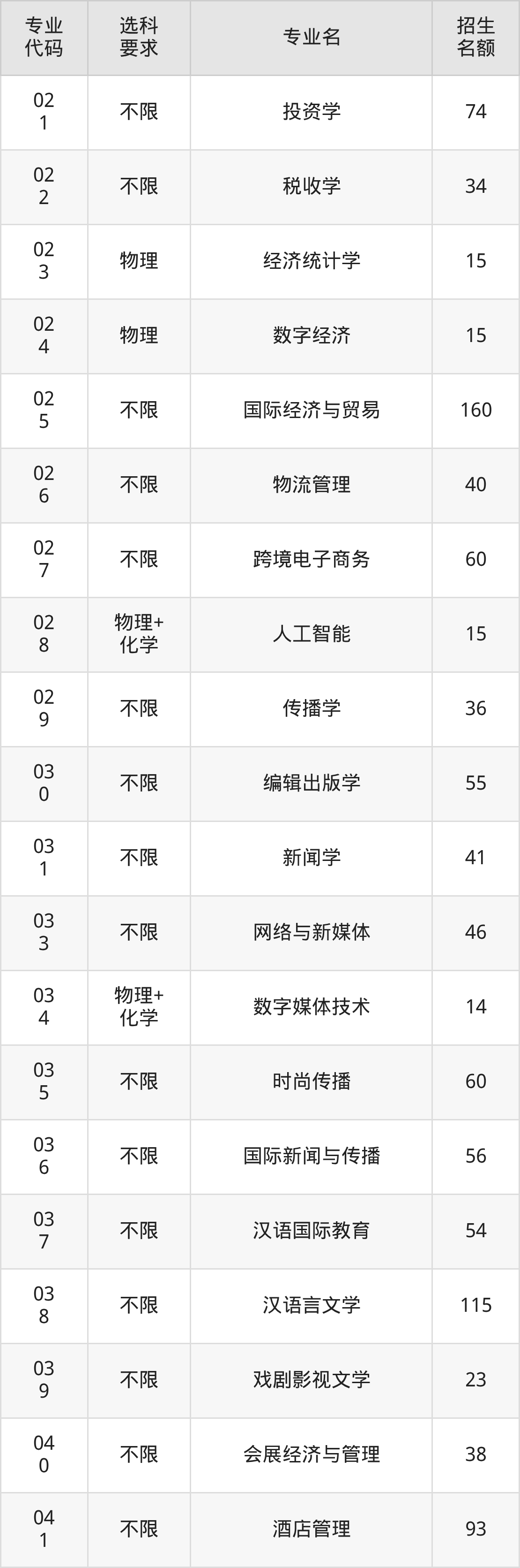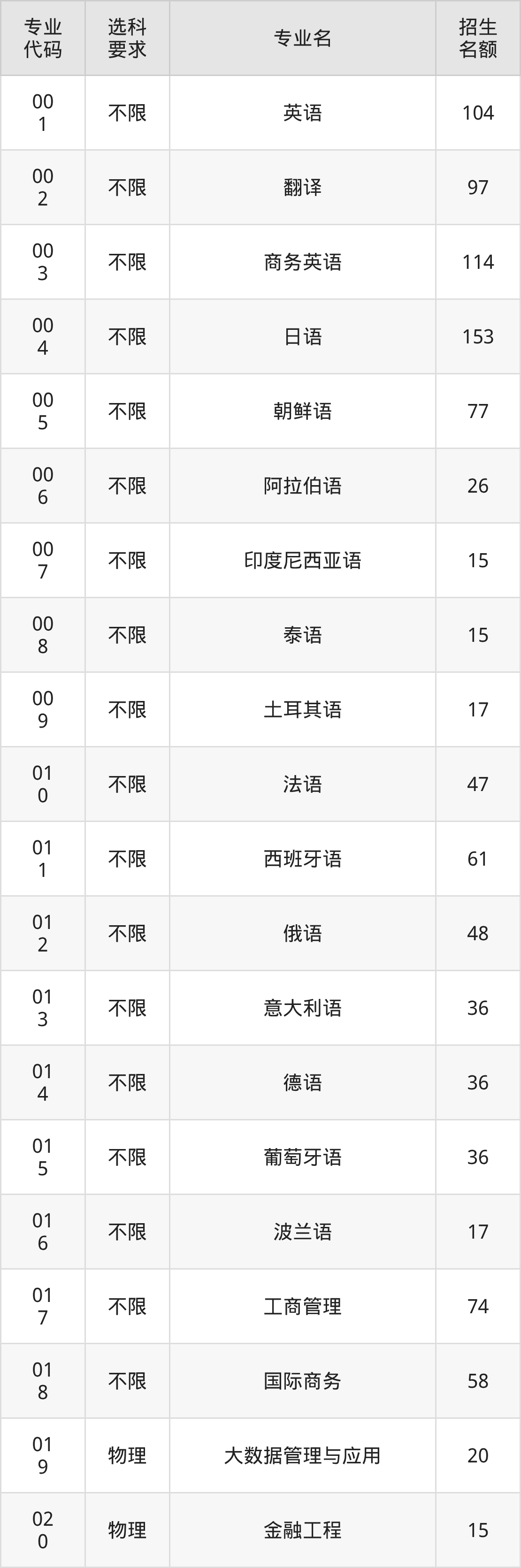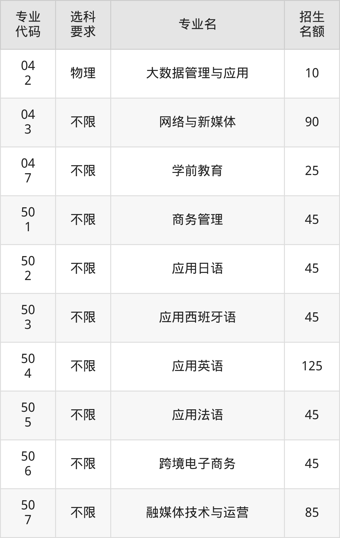 二、浙江越秀外国语学院在浙江招生计划及专业