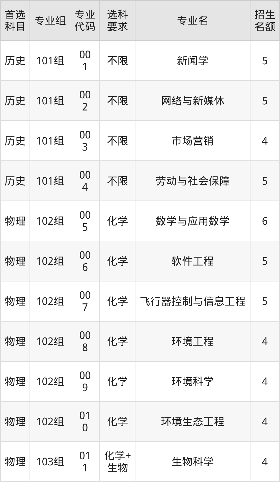 各专业选科要求、招生名额汇总如下: