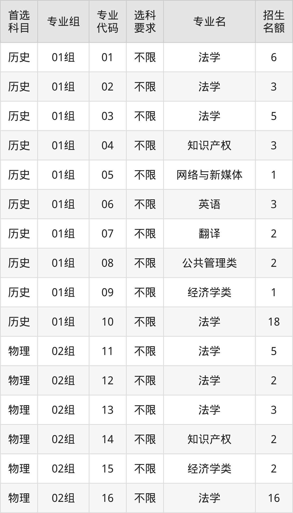 2025年华东政法大学在江苏省本科批招生中,总计划人数为74人,招生专业有7个,包括法学(58人)、知识产权(5人)、网络与新媒体(1人)、英语(3人)等。