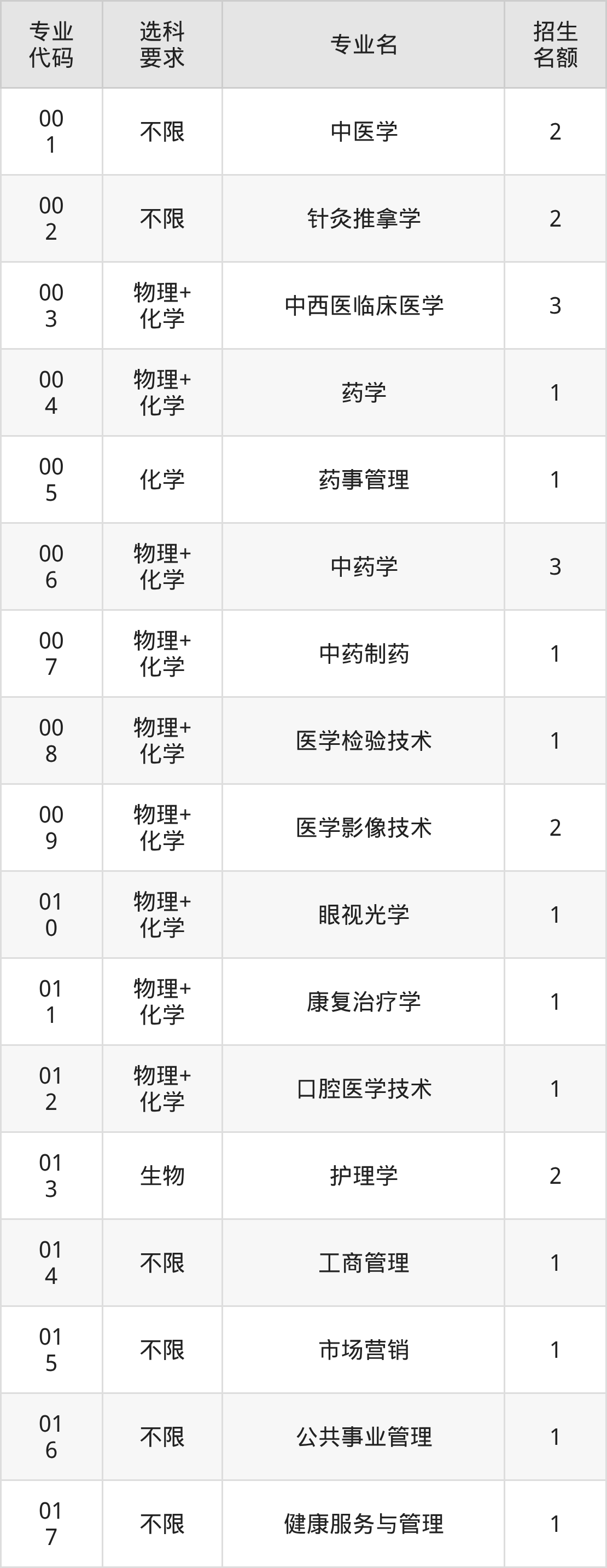 二、北京中医药大学东方学院在浙江招生计划及专业