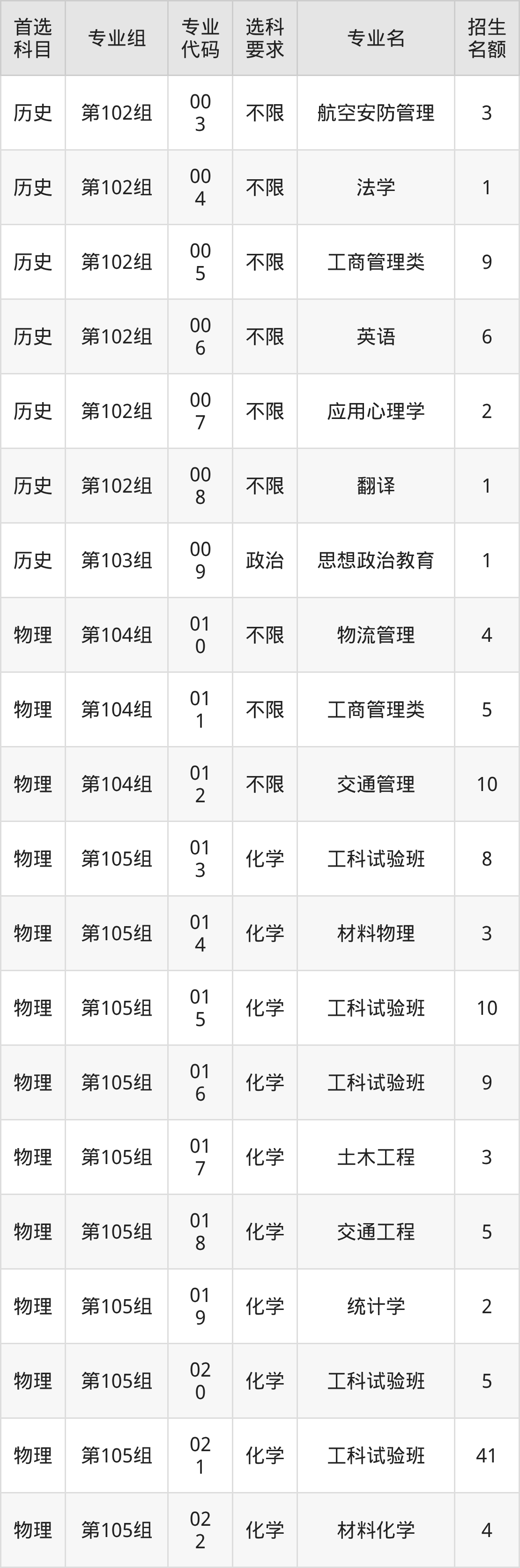 2025年中国民航大学在湖南省本科批招生中,总计划人数为219人,招生专业有22个,包括航空安防管理(3人)、法学(1人)、工商管理类(14人)、英语(6人)等。其中工科试验班为中外合作办学,学费是5800元/年。