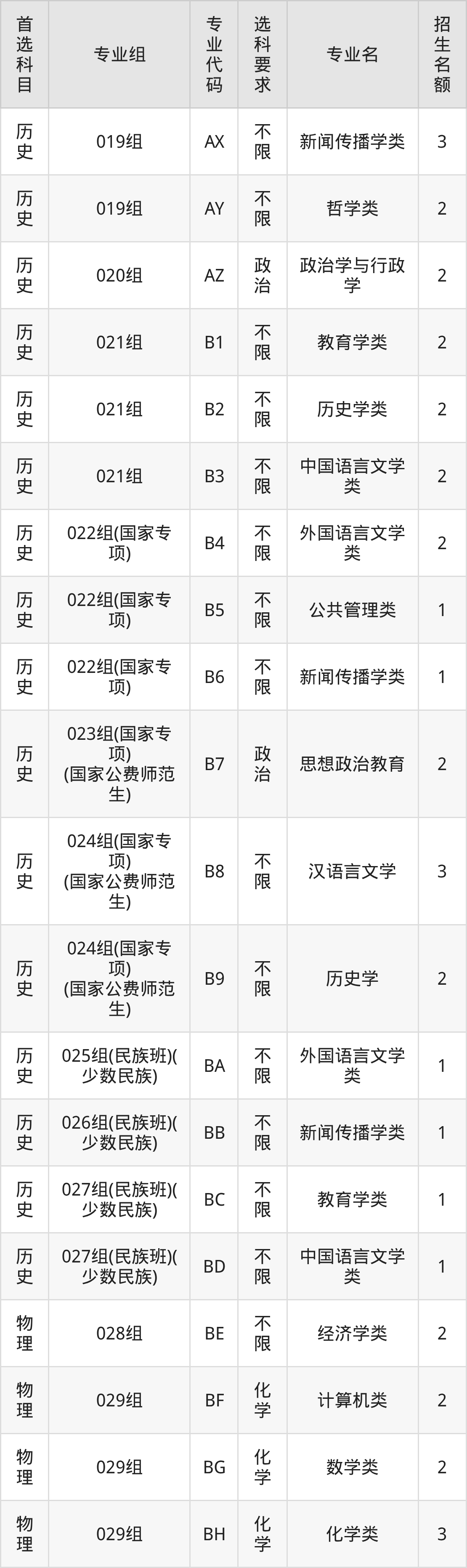 | 历史 | 024组(国家专项) (国家公费师范生) | 594 | 799 |