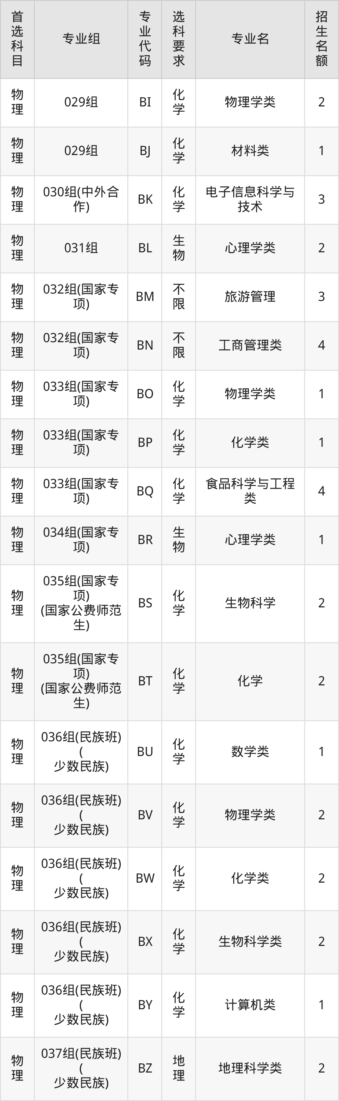 | 物理 | 036组(民族班)( 少数民族) | 549 | 12400 |