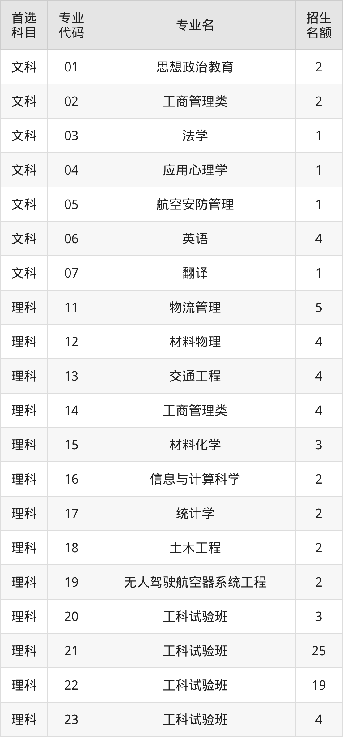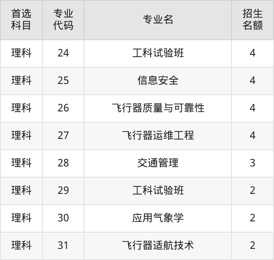 二、中国民航大学在新疆招生计划及专业