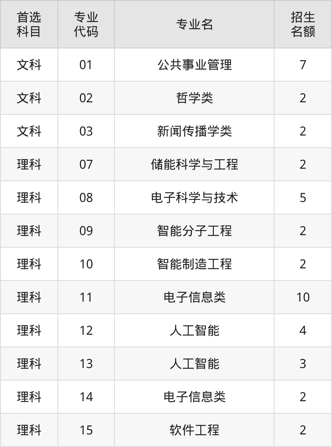 2025年大连理工大学在新疆维吾尔自治区本科一批招生中,总计划人数为43人,招生专业有10个,包括公共事业管理(7人)、哲学类(2人)、新闻传播学类(2人)、储能科学与工程(2人)等。