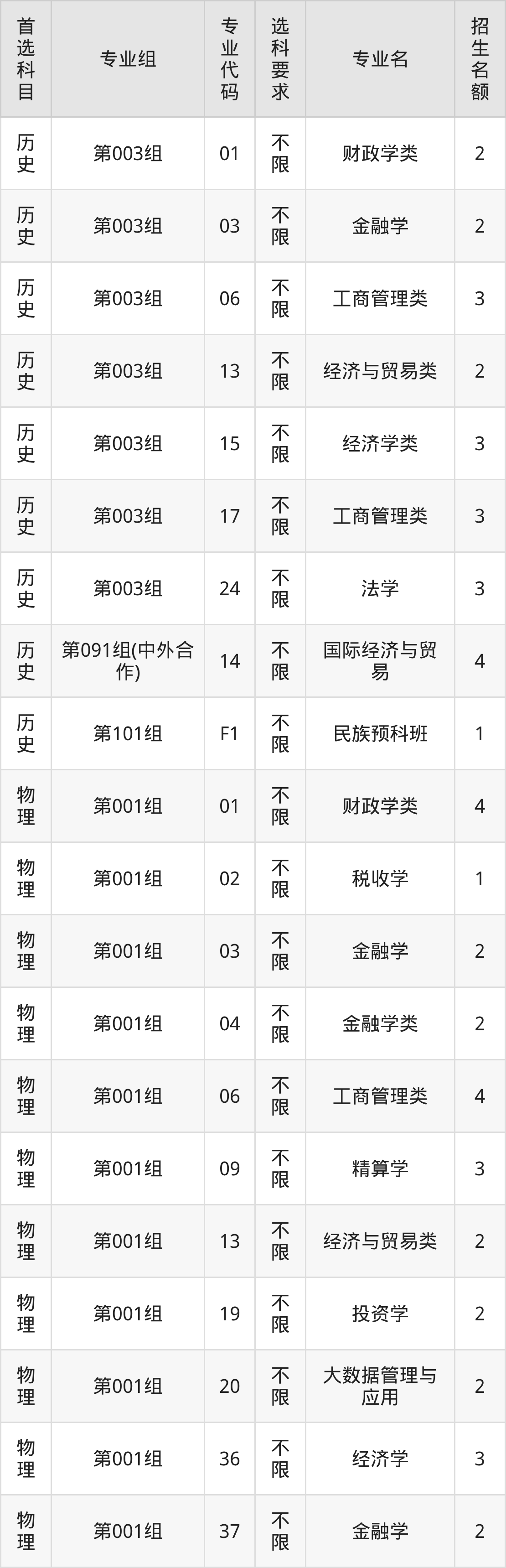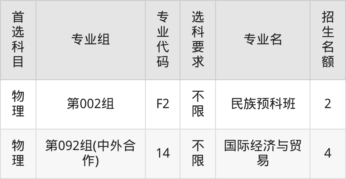 各专业选科要求、招生名额汇总如下: