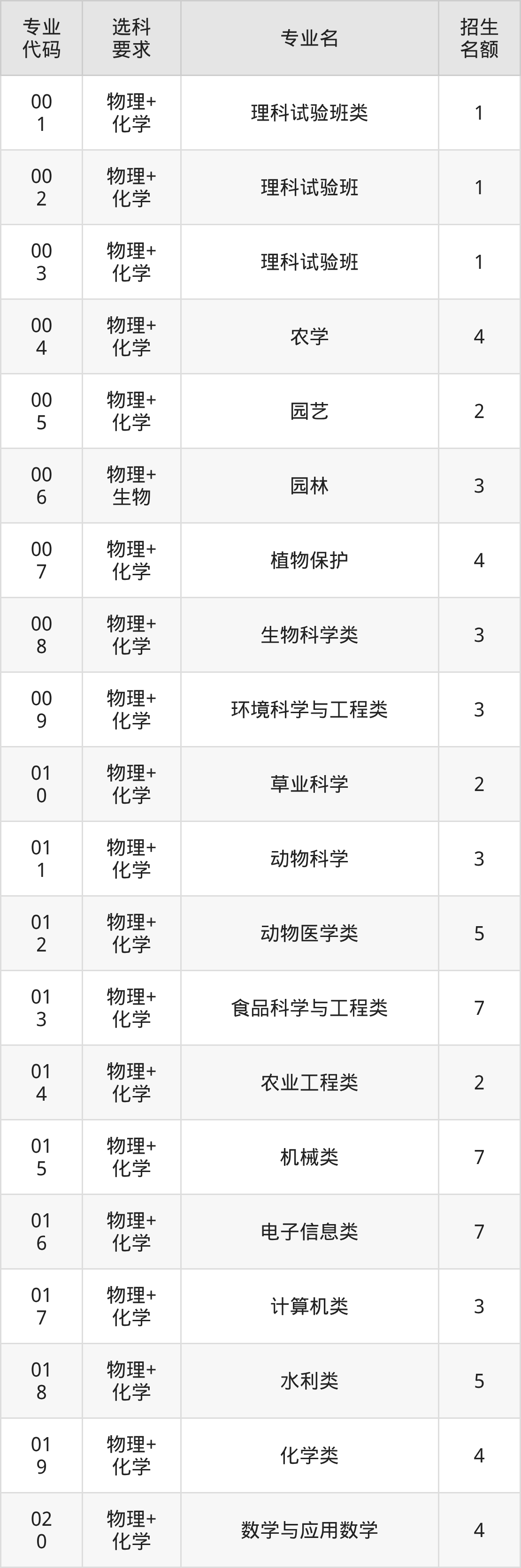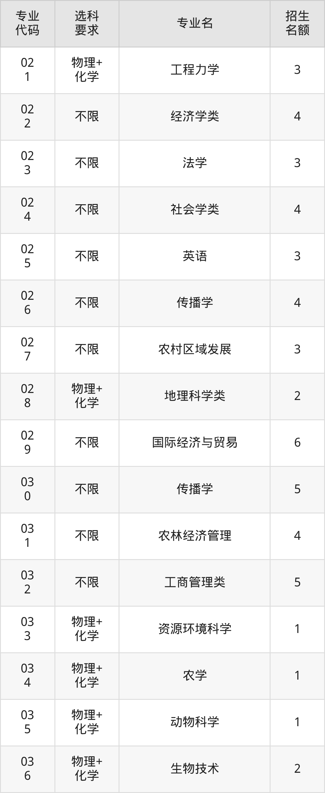二、中国农业大学在浙江招生计划及专业