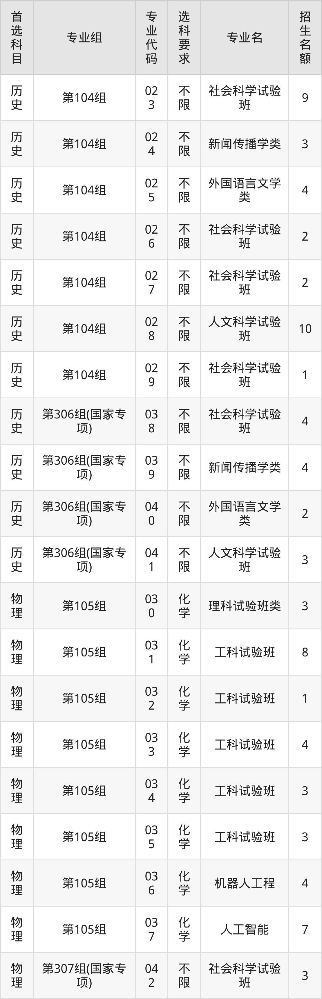 2025年浙江大学在湖南省本科批招生中,总计划人数为99人,招生专业有9个,包括社会科学试验班(21人)、新闻传播学类(7人)、外国语言文学类(6人)、人文科学试验班(13人)等。