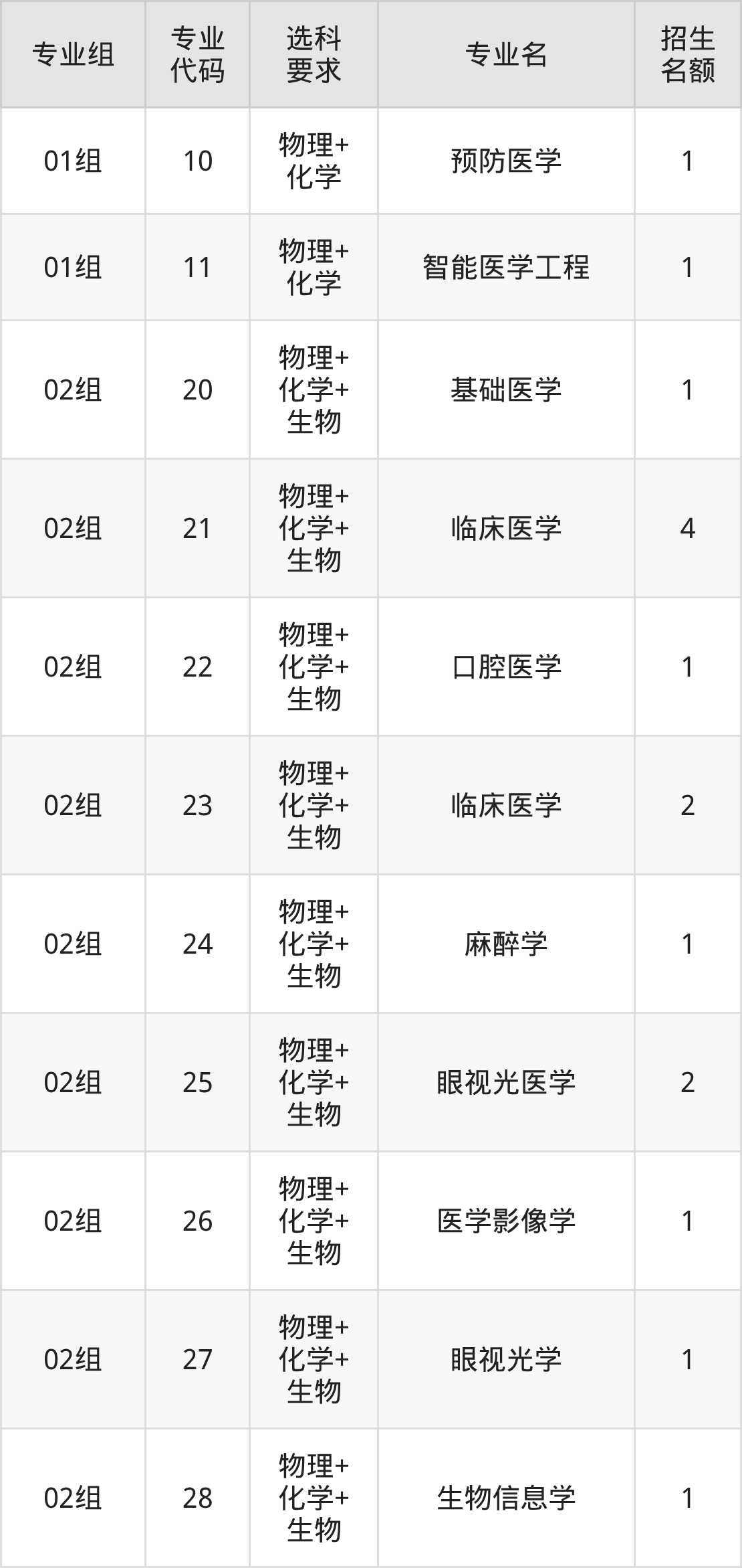 各专业选科要求、招生名额汇总如下: