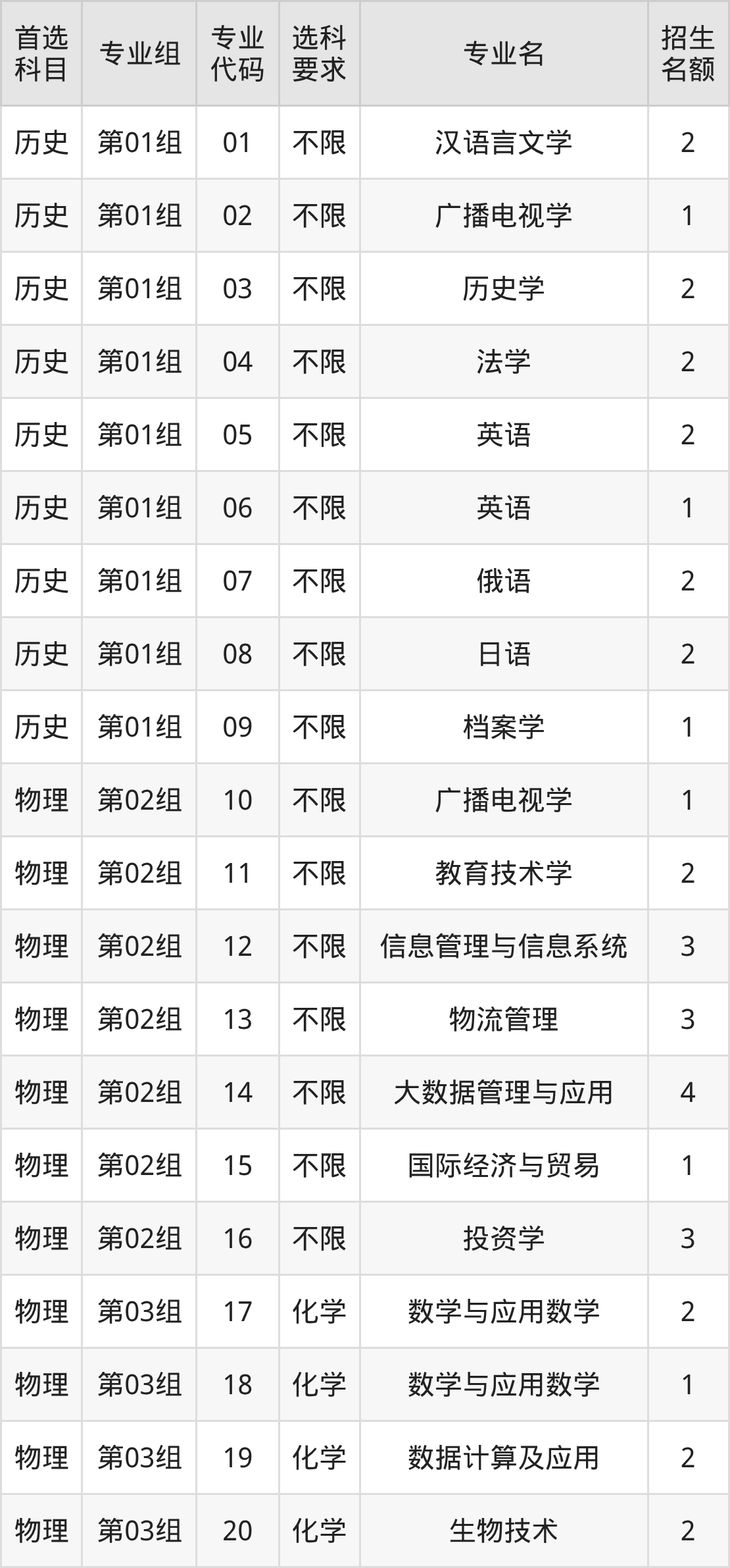 2025年天津师范大学在湖北省本科批招生中,总计划人数为45人,招生专业有19个,包括汉语言文学(2人)、广播电视学(2人)、历史学(2人)、法学(2人)等。