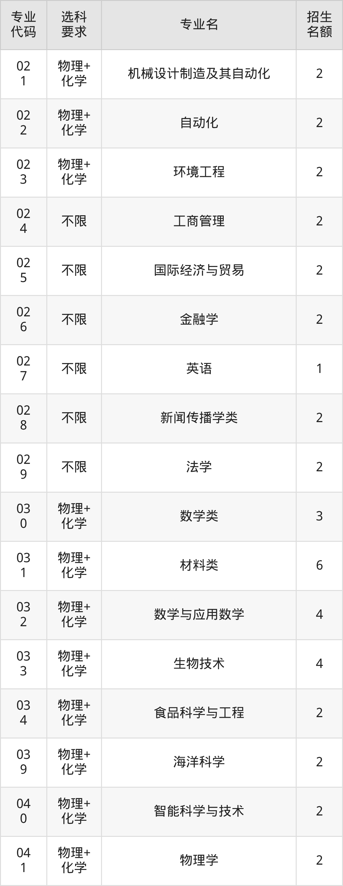 2025年中国海洋大学在浙江省招生中,总计划人数为96人,招生专业有35个,包括海洋科学(6人)、大气科学(4人)、电子信息类(6人)、计算机类(4人)等。其中海洋科学、计算机科学与技术、数学与应用数学为中外合作办学,学费依次是52000元、70000元、60000元。