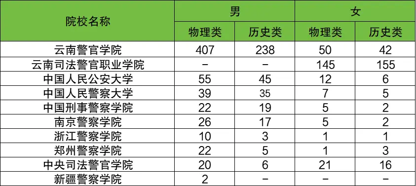 2025年全国10所警校在云南招生计划总人数为1450人,其中男生971人、女生479人。下面是各个警校招生人数情况汇总: