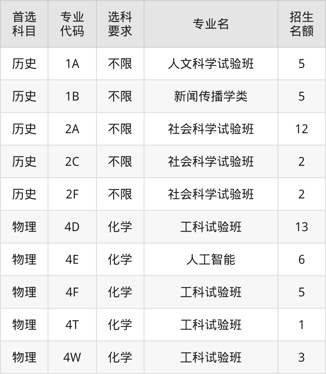 各专业选科要求、招生名额汇总如下: