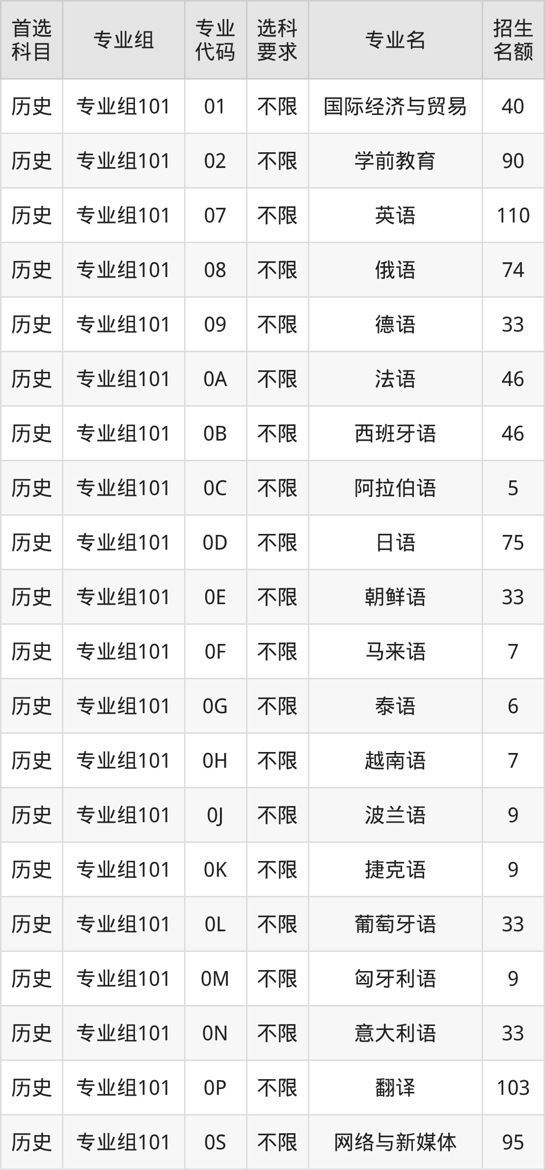 | 历史 | 专业组101 | 413 | 107301 |