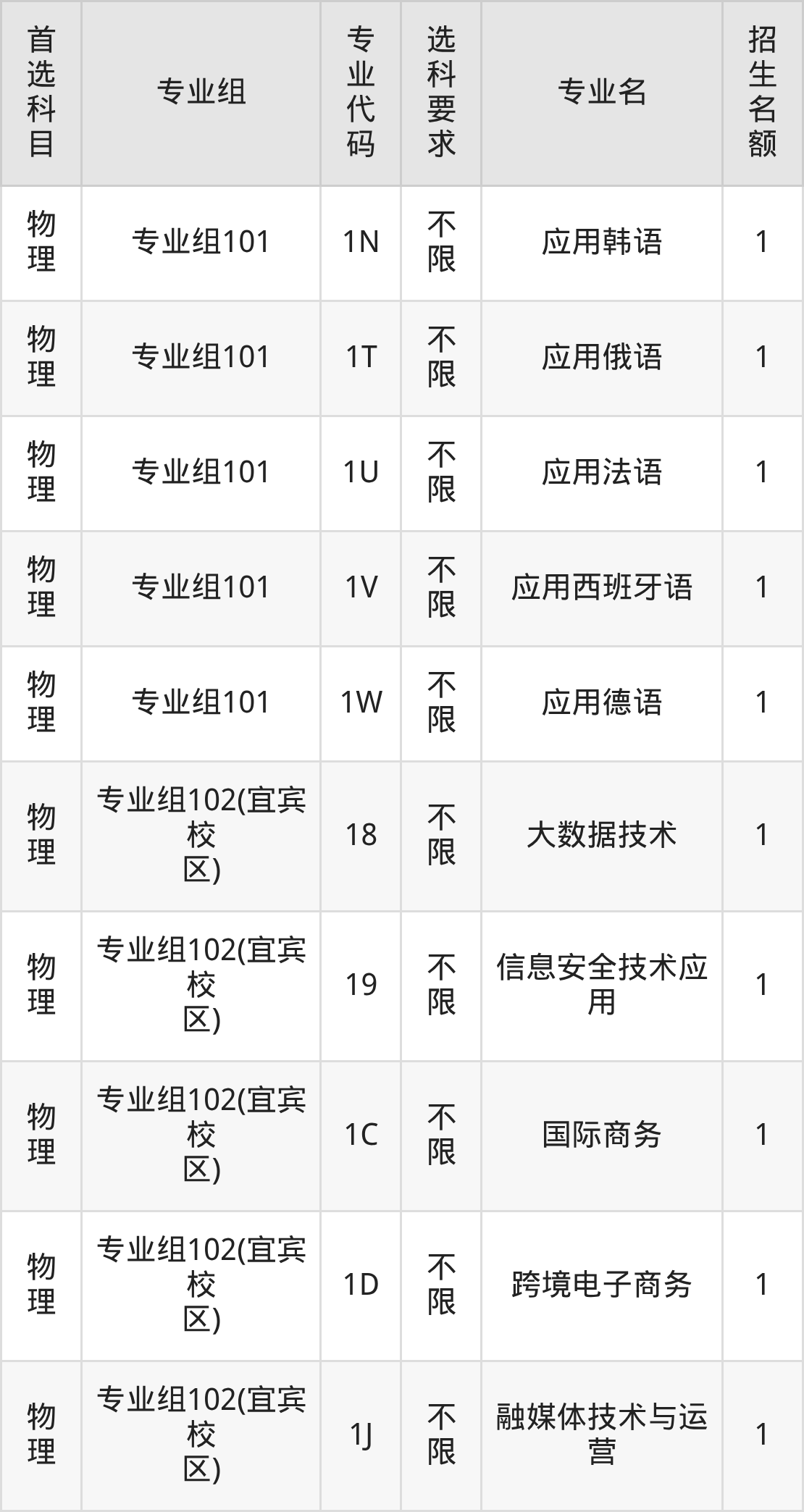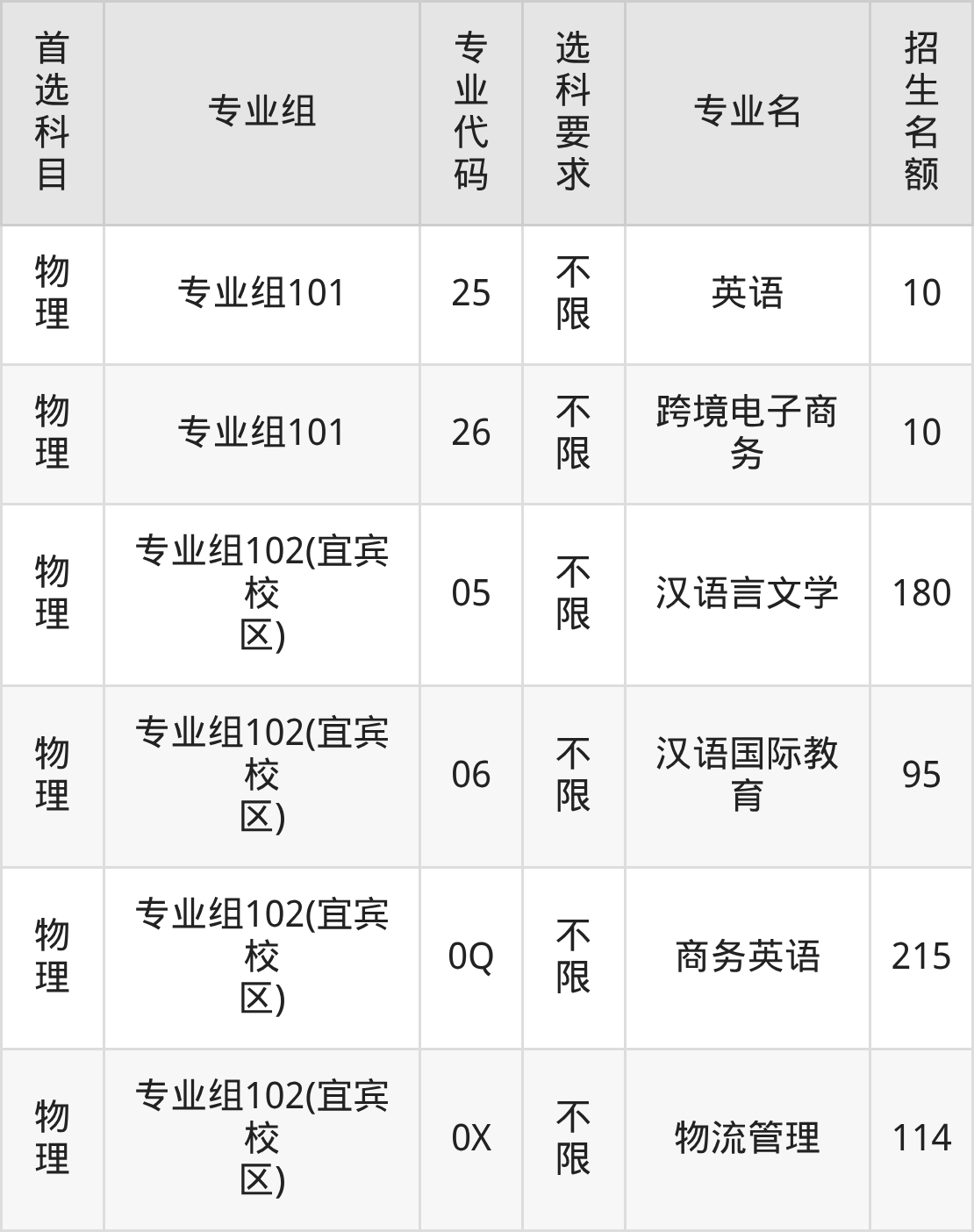 | 物理 | 专业组102(宜宾校 区) | 399 | 241421 |