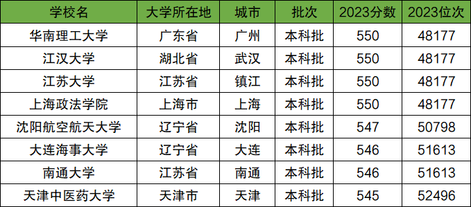 二、物化地550分能上的大学——河北省外