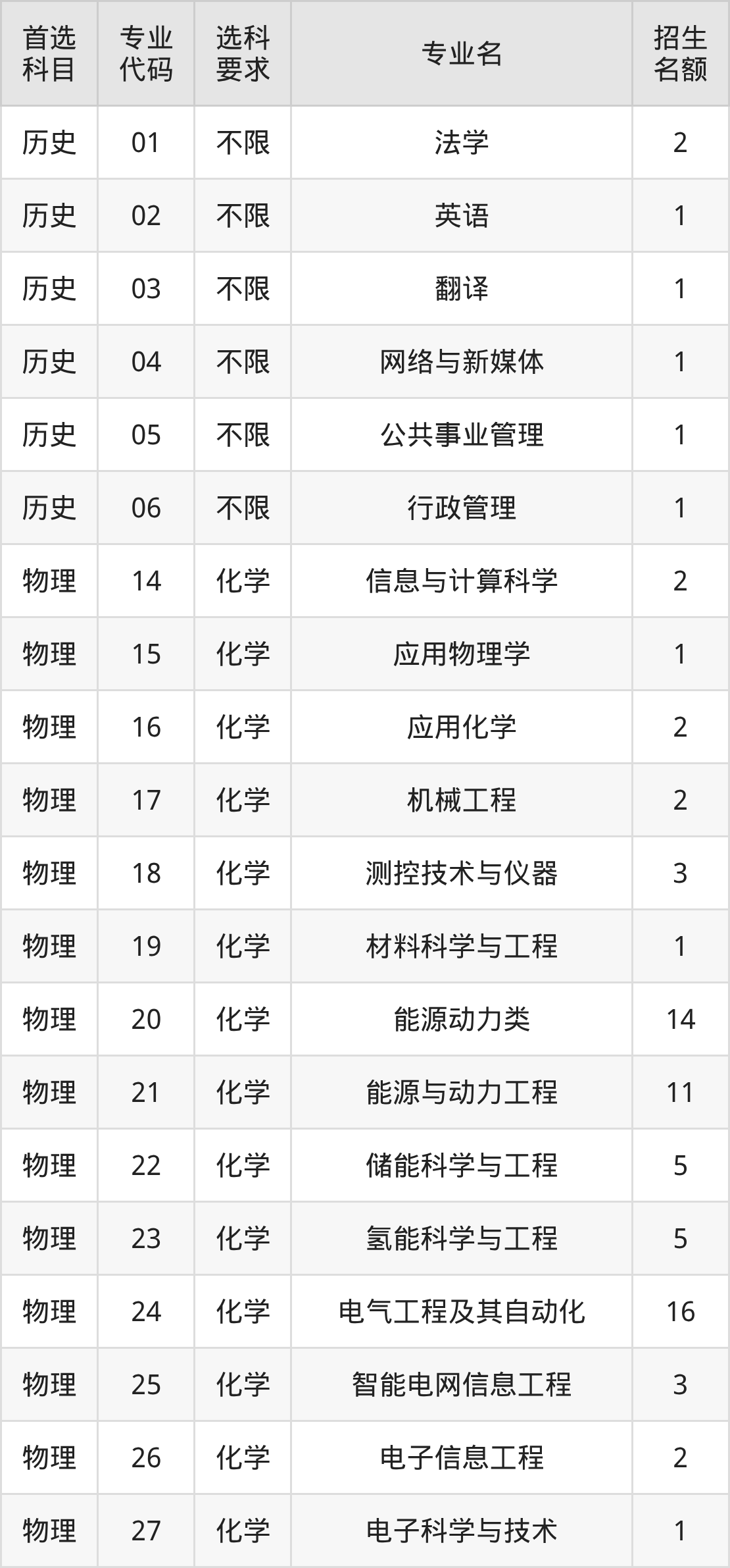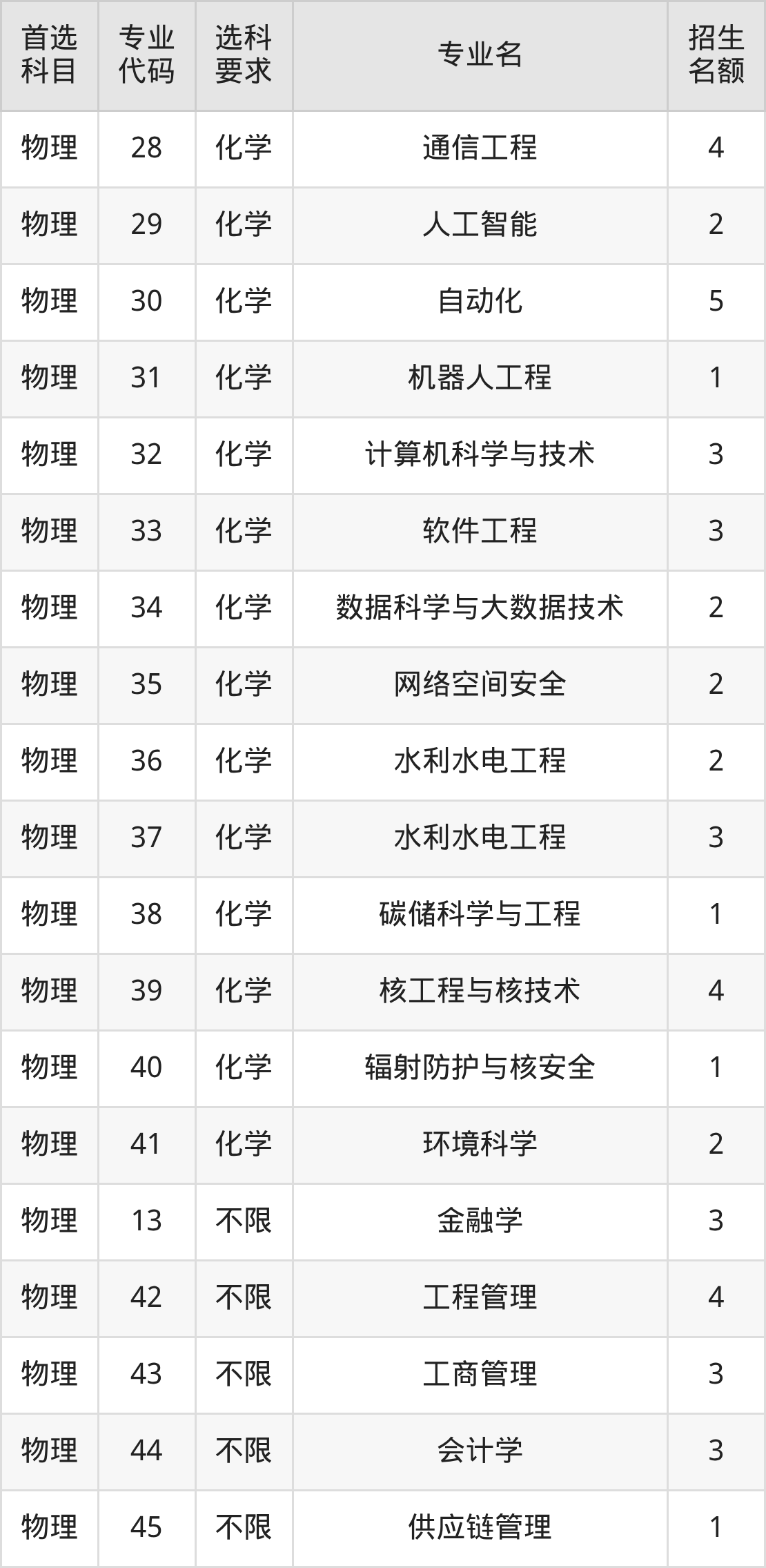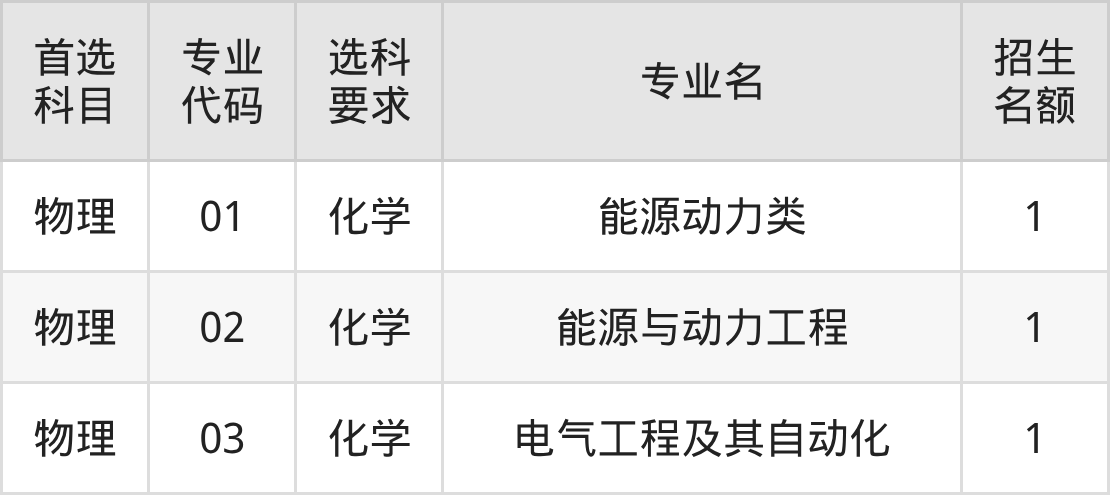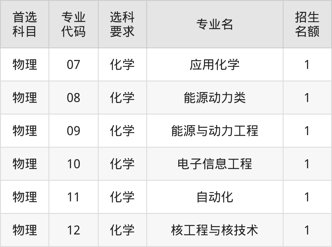 各专业选科要求、招生名额汇总如下: