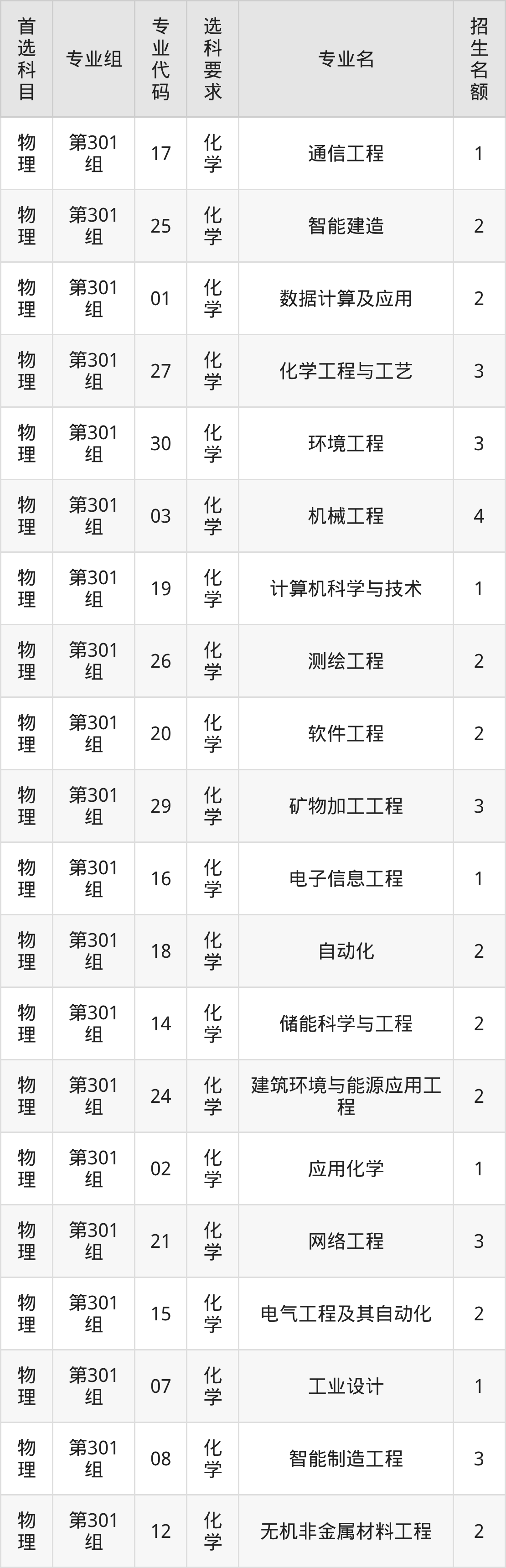 各专业选科要求、招生名额汇总如下: