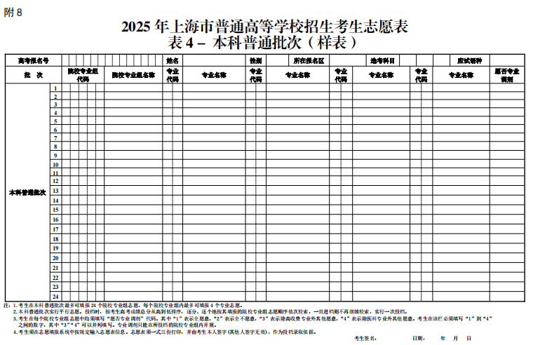 以下是上海高考志愿表的填写样本,供考生和家长参考: