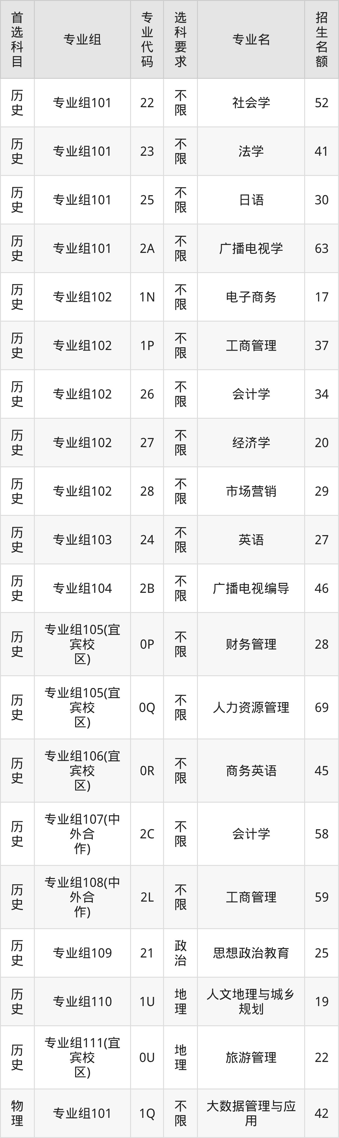| 历史 | 专业组111(宜宾校 区) | 563 | 14706 |