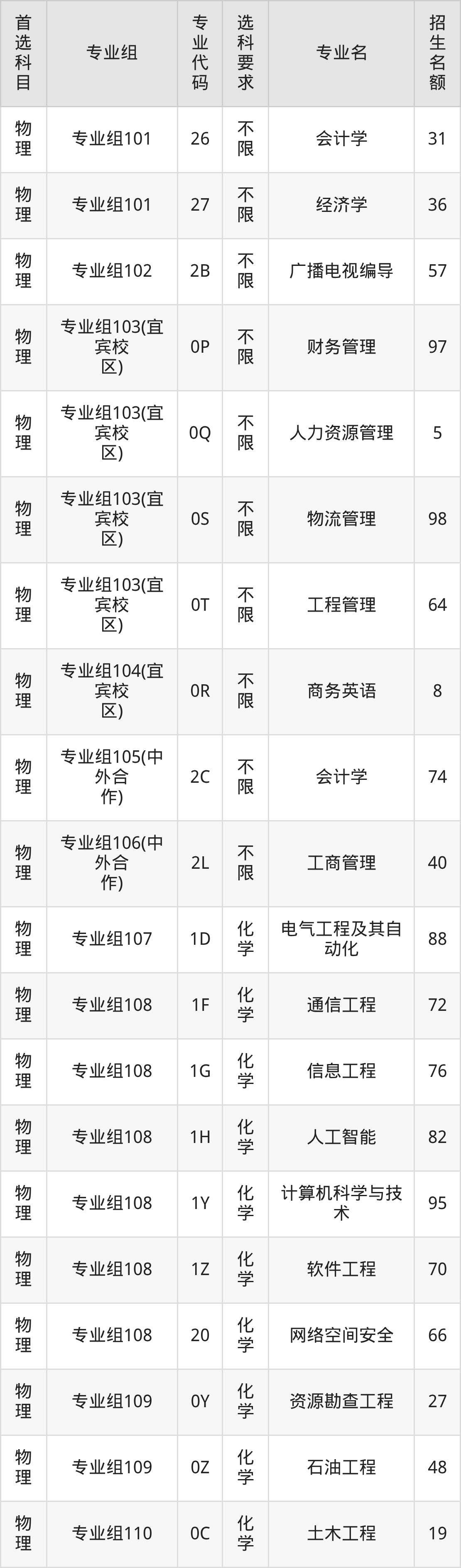 | 物理 | 专业组103(宜宾校 区) | 540 | 76490 |