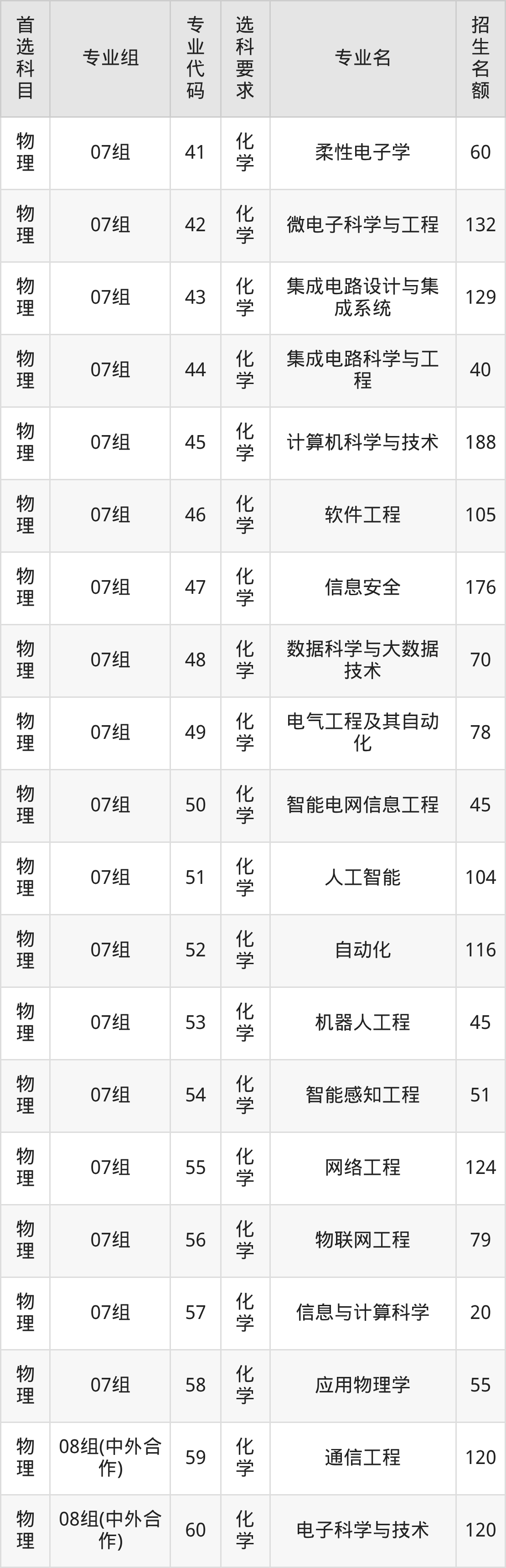二、南京邮电大学在江苏招生计划及专业