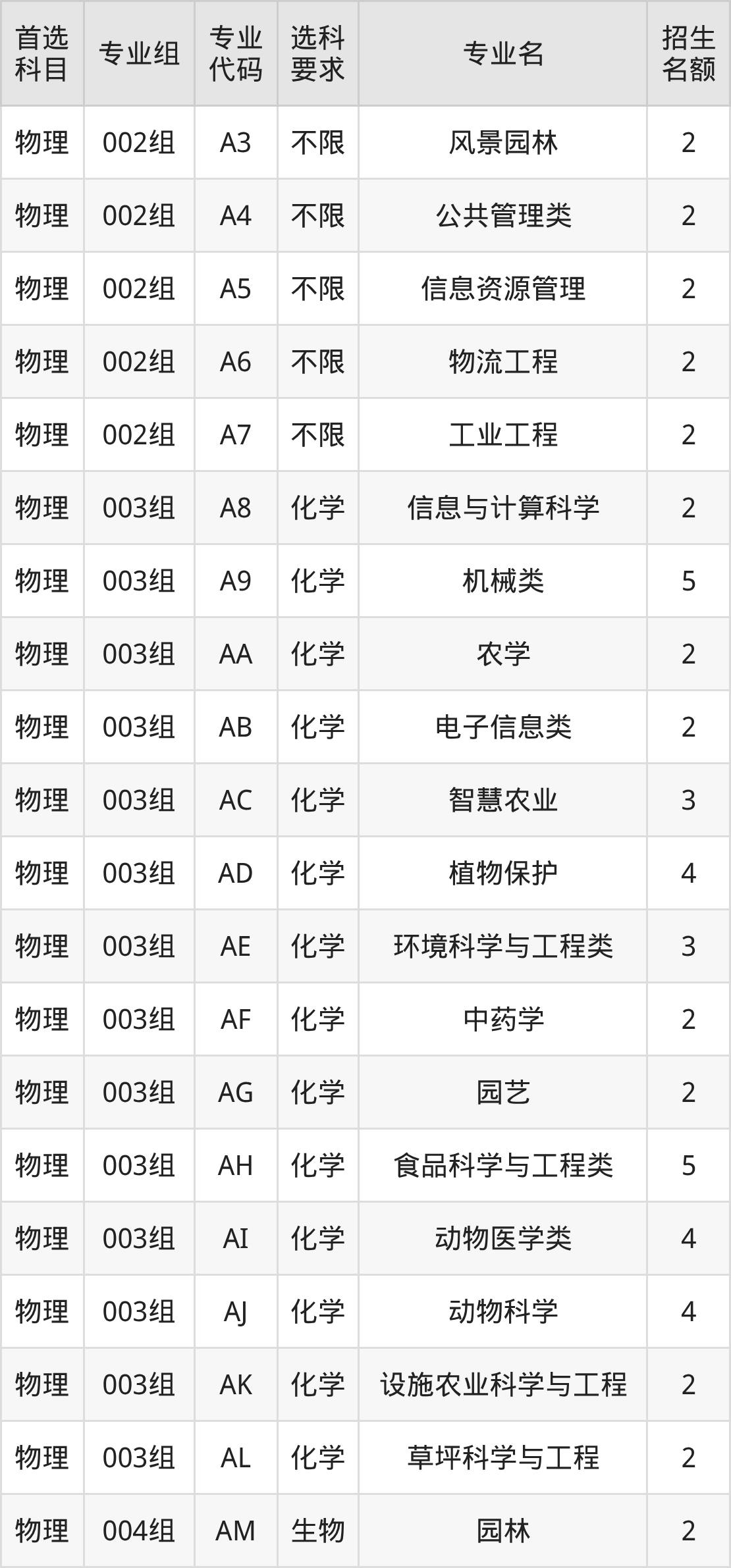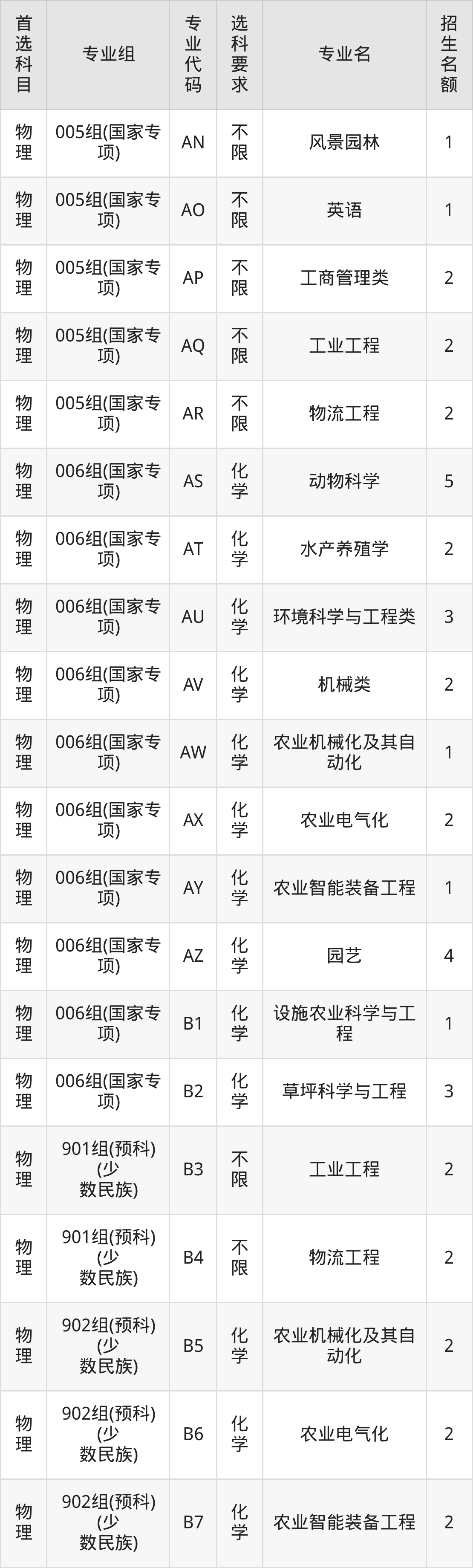 二、南京农业大学在甘肃招生计划及专业