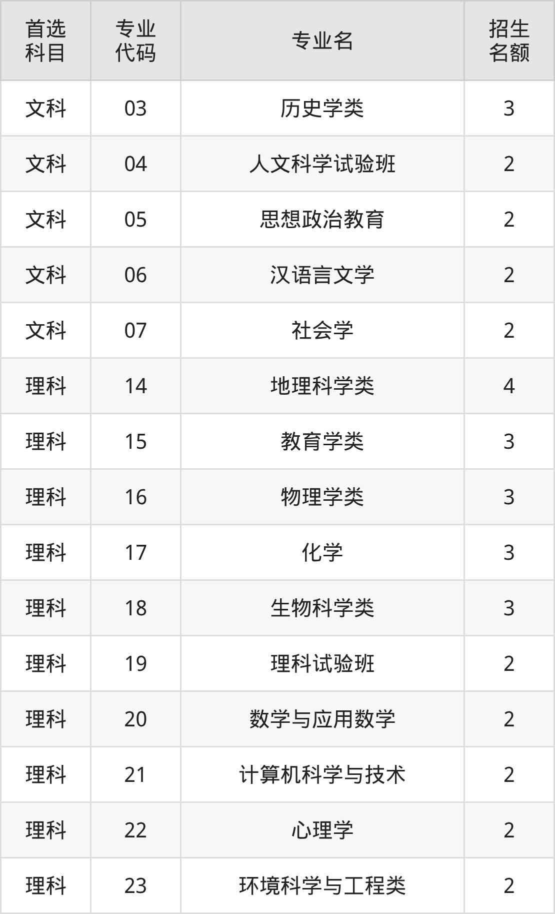 二、北京师范大学在新疆招生计划及专业