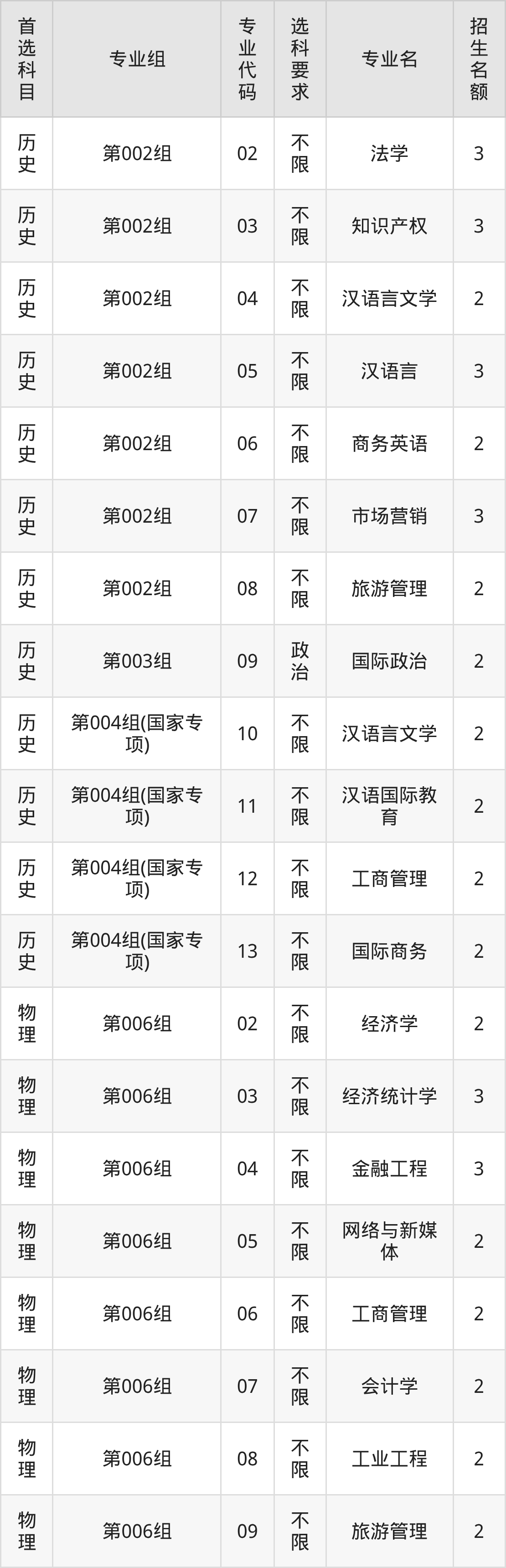 2025年暨南大学在黑龙江省本科批招生中,总计划人数为75人,招生专业有28个,包括法学(3人)、知识产权(3人)、汉语言文学(4人)、汉语言(3人)等。